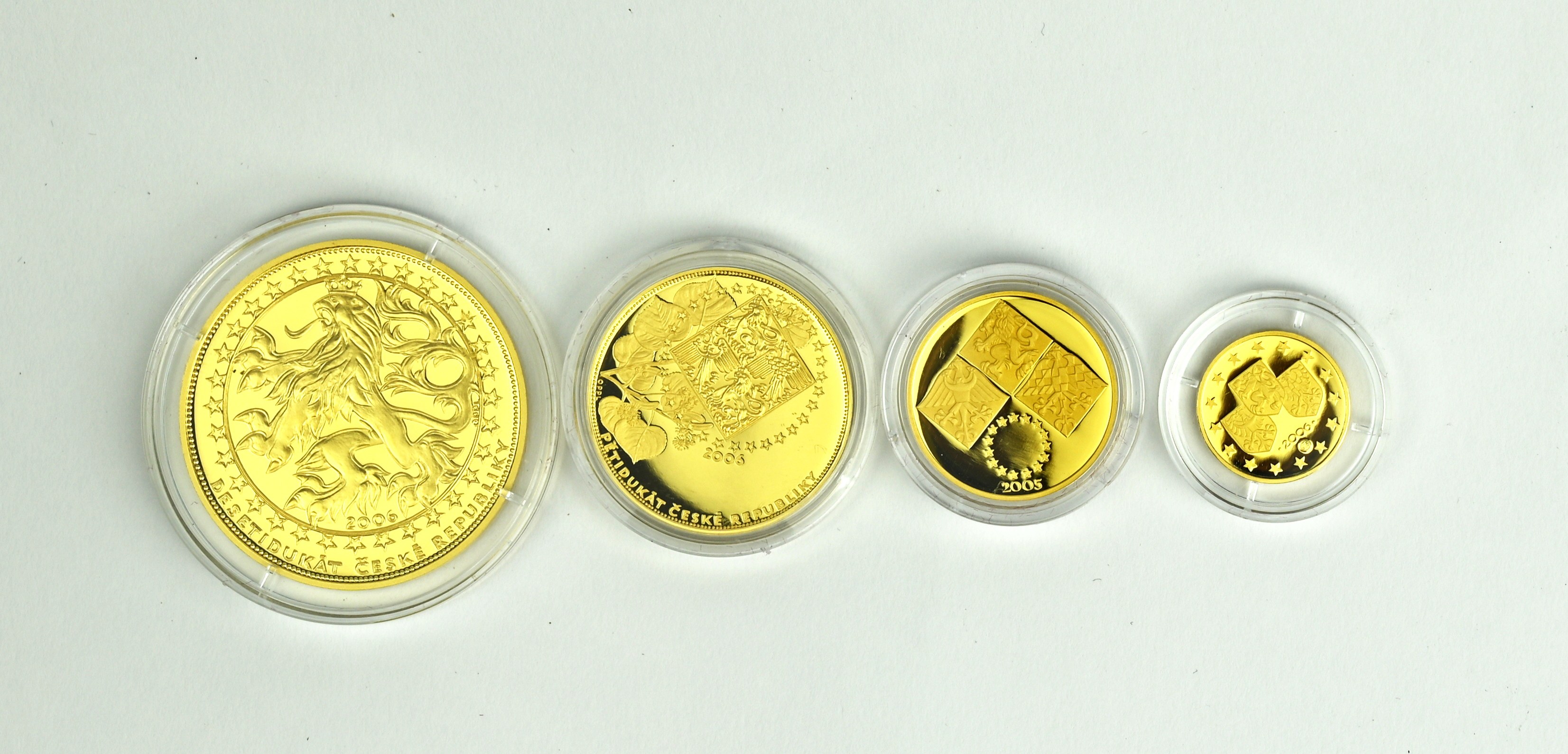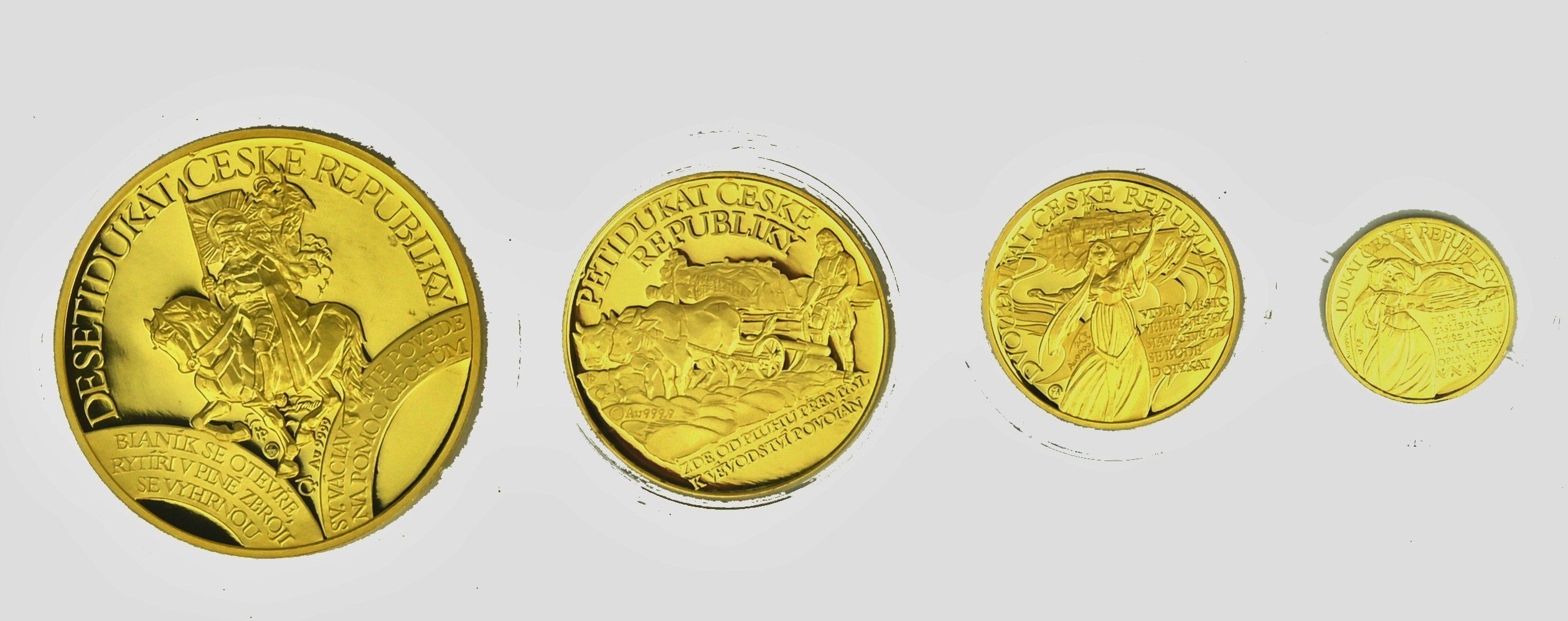 ČR, Sada Dukátů, 1, 5, 10 Dukát, 2006, + 2 dukát 2005, Proof, Česká Mincovna, 37 mm, 31,1 g, Au 999,9/1000, 28 mm, 15,56 g, 22 mm, 7,78 g, 16 mm, 3,11 g, P. Horák, V. Oppl, L. Lietava