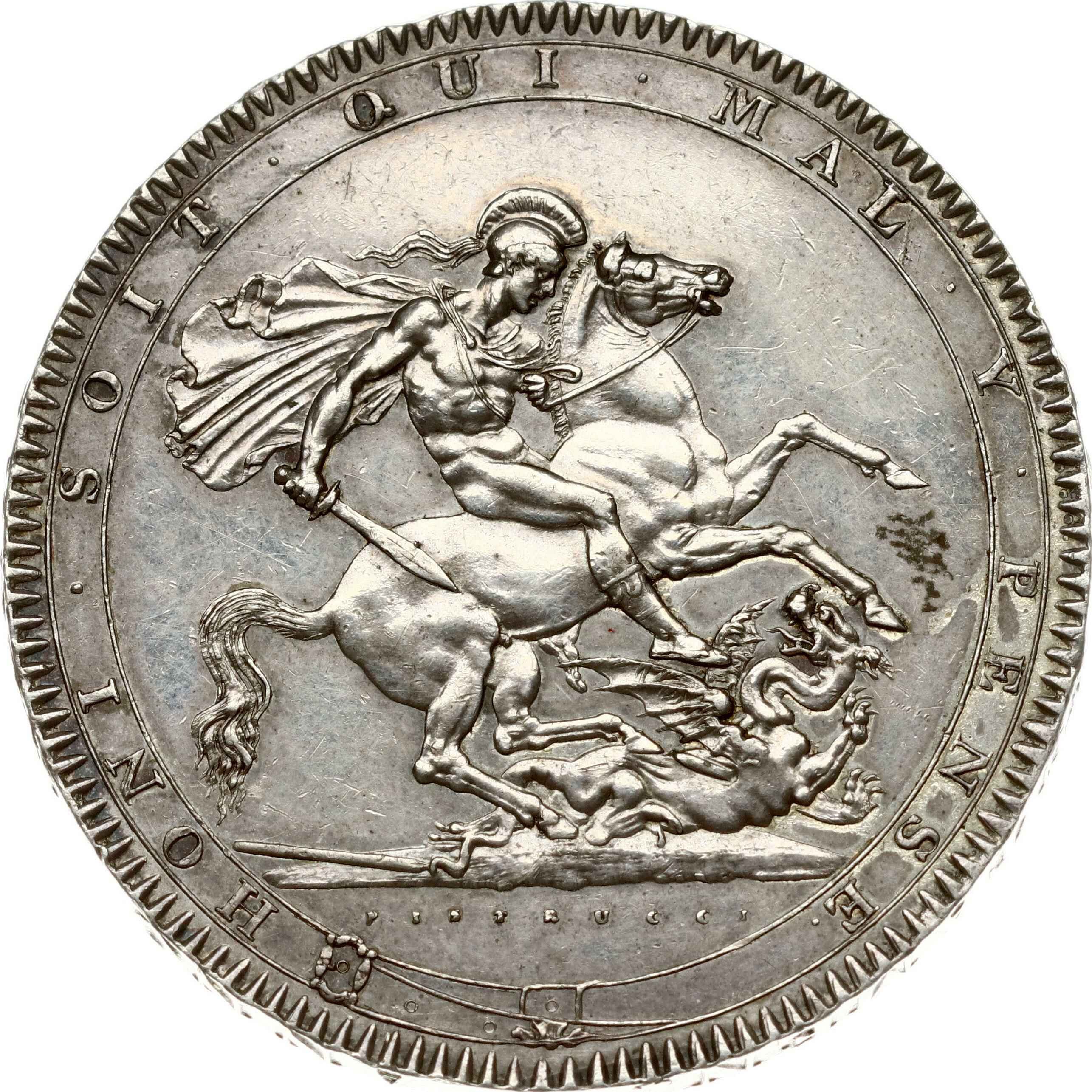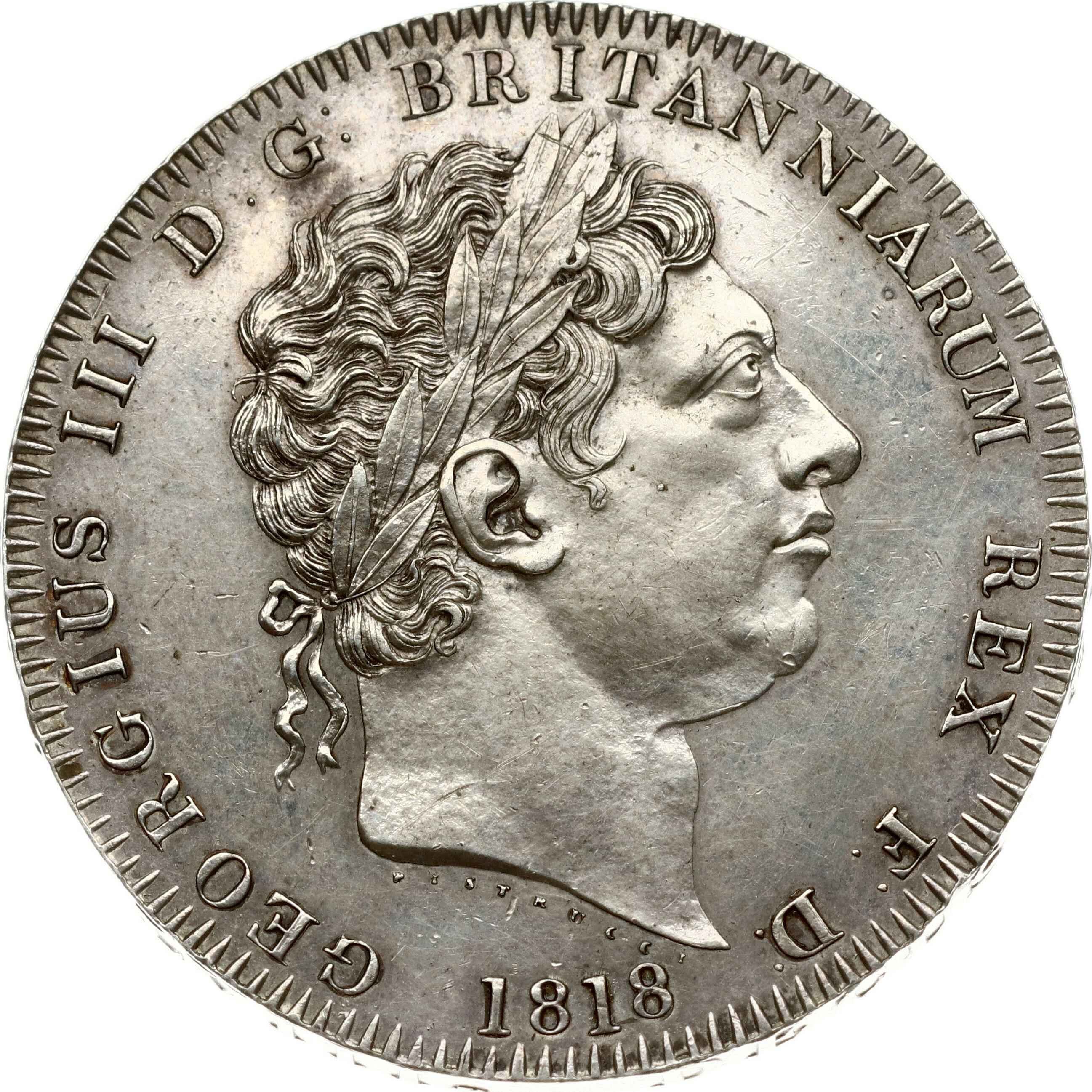 Great Britain. George III (1760-1820). Crown 1818, LVIII on edge. Silver 28.21 g. KM-675. Patina.