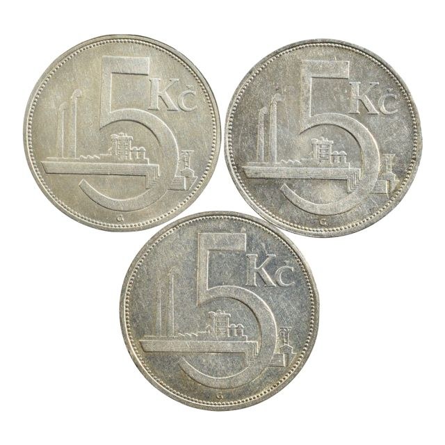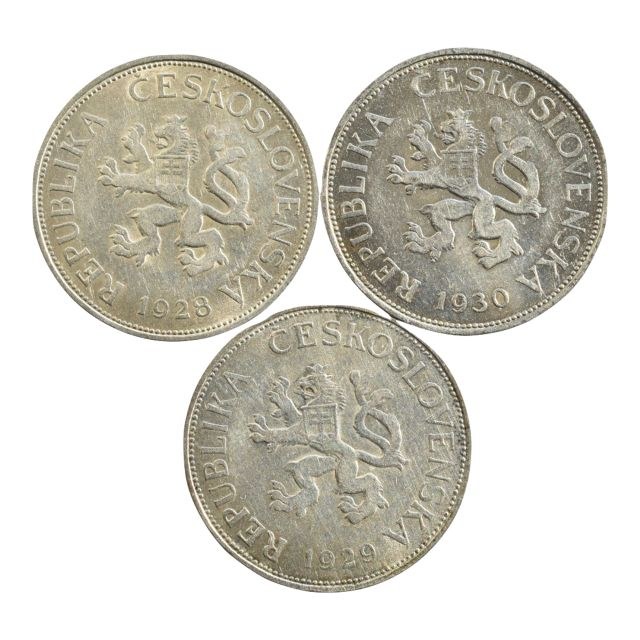 ČSR 1918-1939, 5 Kč 1928, 1929, 1930, 3 ks