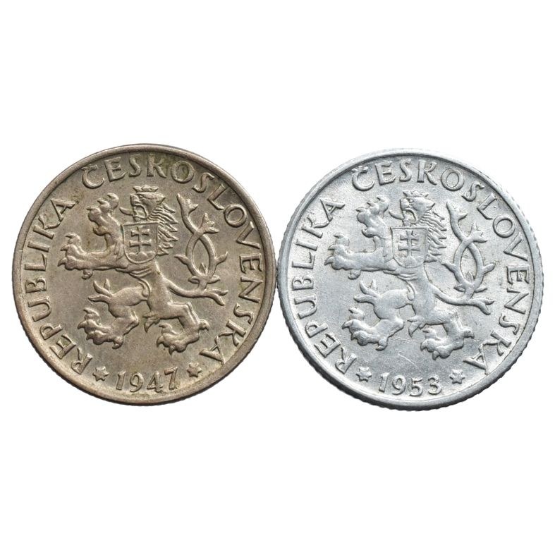 1 Kč 1947 Ni, 1 Kč 1953, Al, 2 ks, R