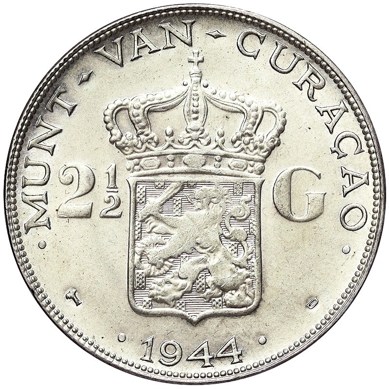Curacao, Wilhelmina, 2-1/2 Gulden 1944
