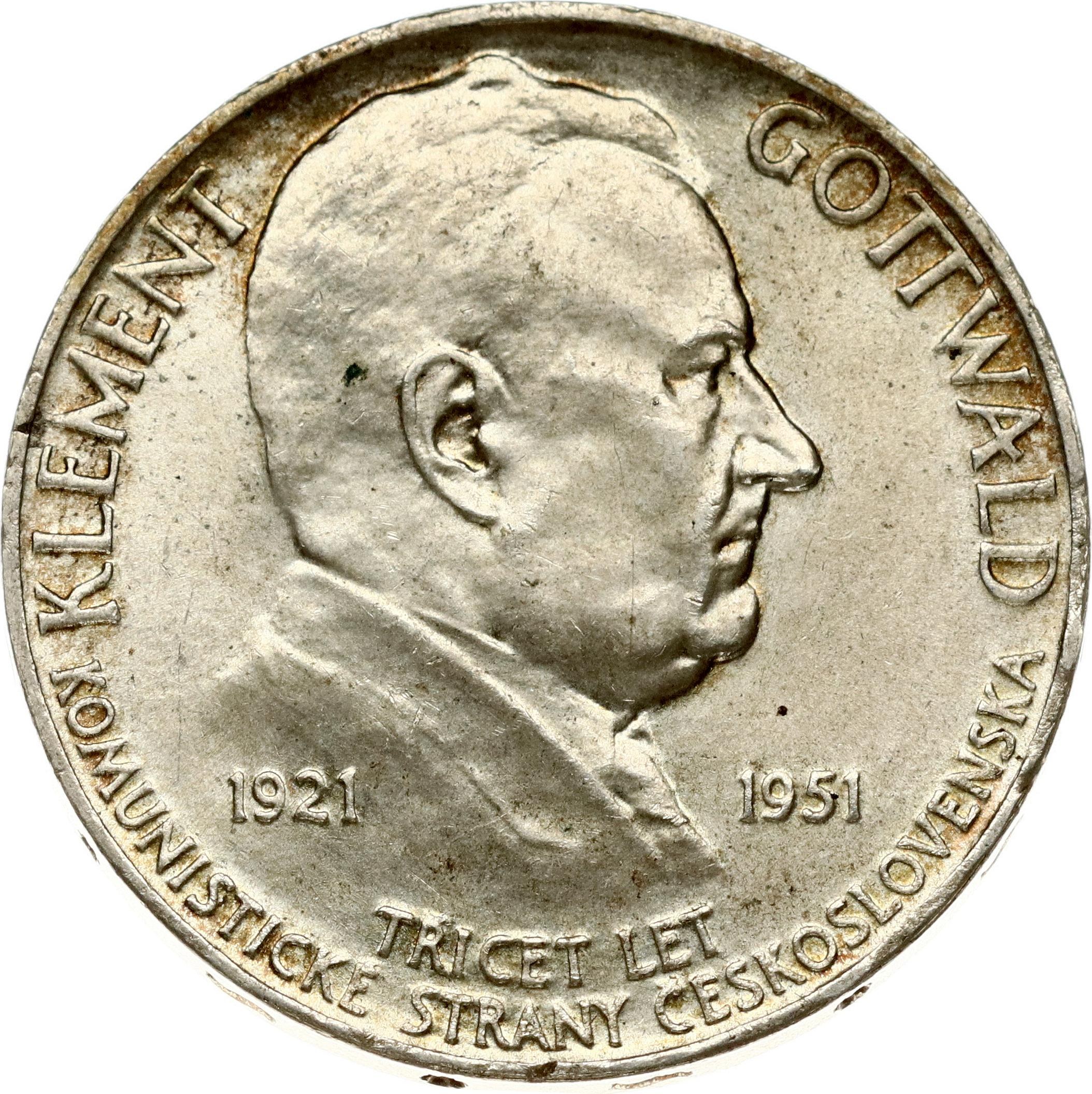 Czechoslovakia 100 Korun 1951 30th Anniversary - Communist Party. Silver .500, 13.93g. KM-33