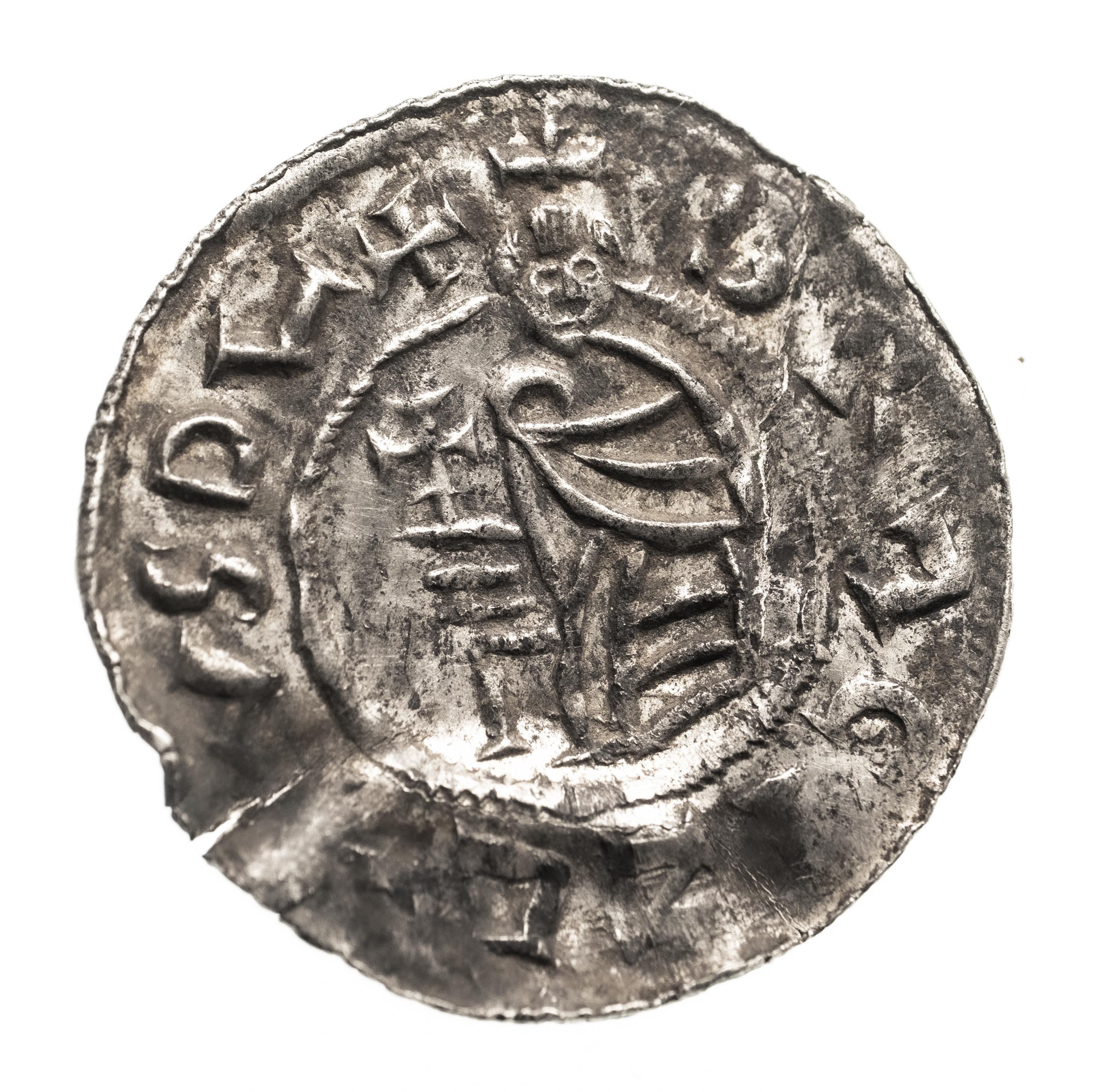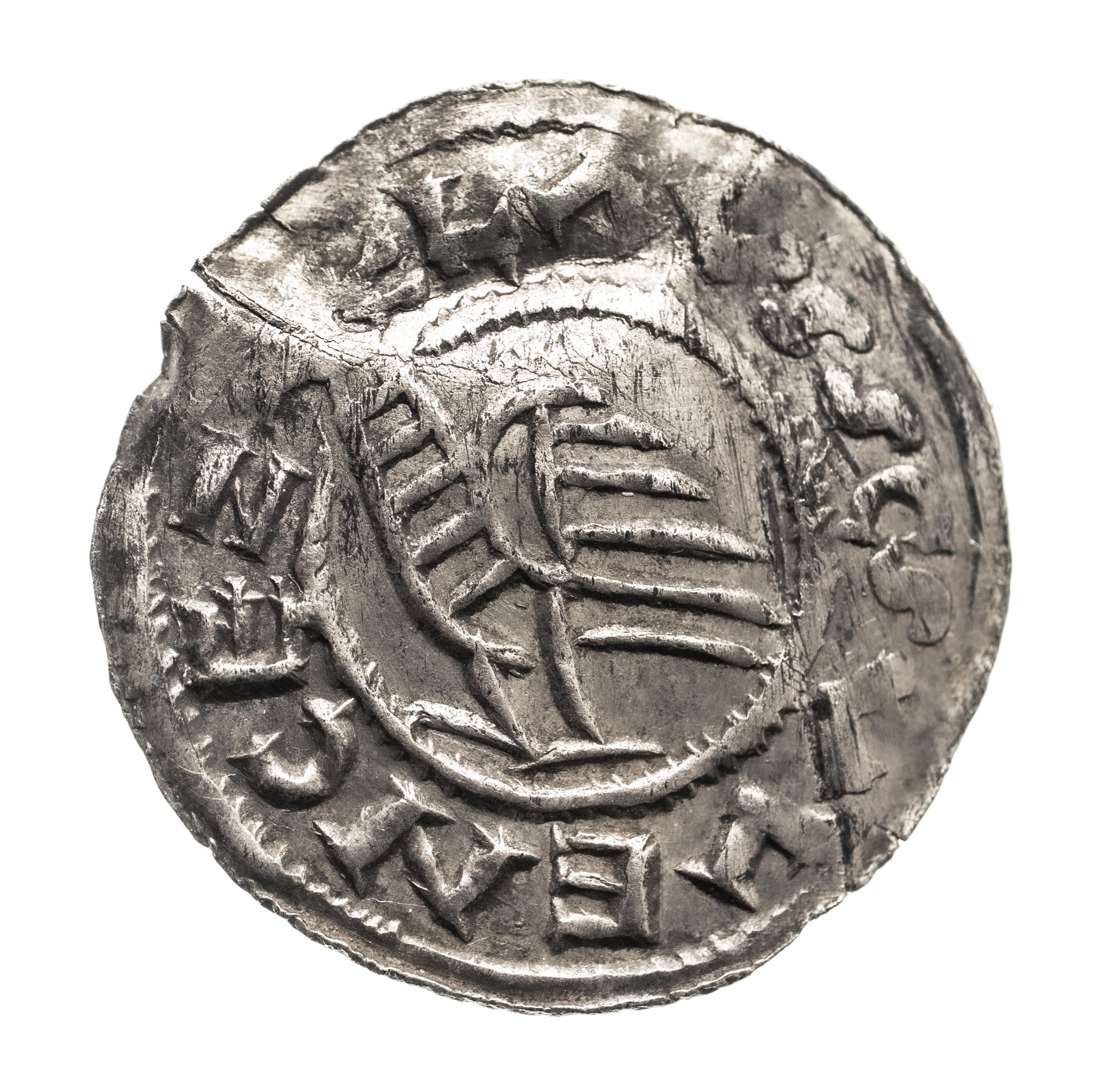 Rw: Orzeł stojący w lewo, SCS VVENCEZLΛVS, srebro, 20.4 mm, 1.13 g, gięty.