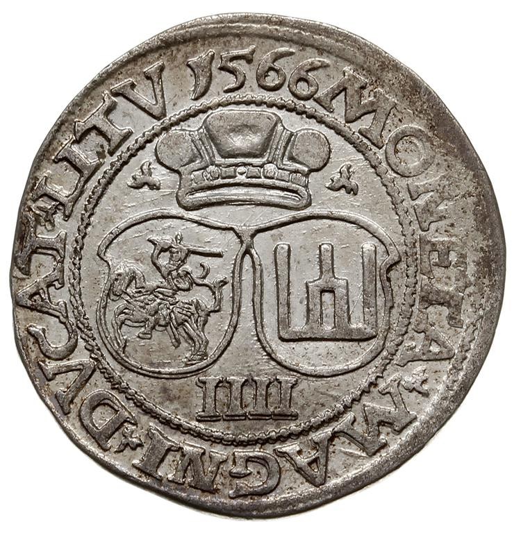 Zygmunt II August 1545-1572, czworak 1566, Wilno, Ivanauskas 10SA15-2, ładny blask menniczy, patyna