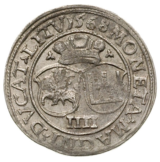 Zygmunt II August 1545-1572, czworak 1568, Wilno, Ivanauskas 10SA31-3, drobna wada blachy