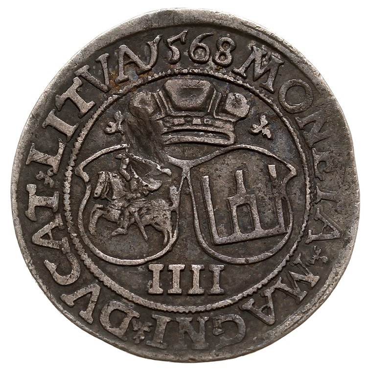 Zygmunt II August 1545-1572, czworak 1568, Wilno, Ivanauskas 10SA32-3, ciemna patyna