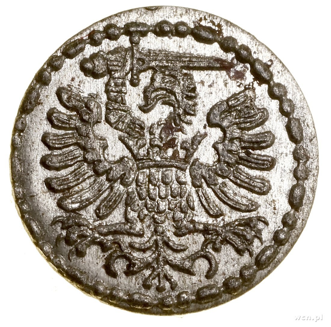 miasto Gdańsk, Denar, 1579, Gdańsk; CNG 126, Kop. 7415 (R4), Kurp. (1576–1586) 363 (R5), Parchimowicz Batory 167.b, Tyszkiewicz 10 mk; rzadki rocznik, pięknie zachowana moneta.