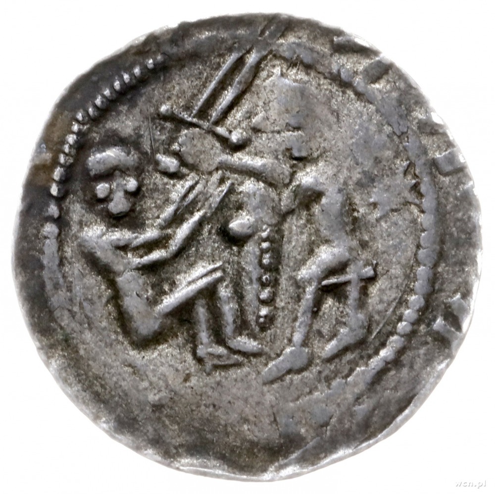 Władysław II Wygnaniec 1138-1146, denar; Aw: Rycerz z mieczem nad jeńcem; Rw: Orzeł chwytający w locie zająca; Frynas P.7.6, Gum.H. 87, Kop. 53 (R2), Str. 43, Such. XVIII; srebro 0.52 g, ładnie zachowany, patyna