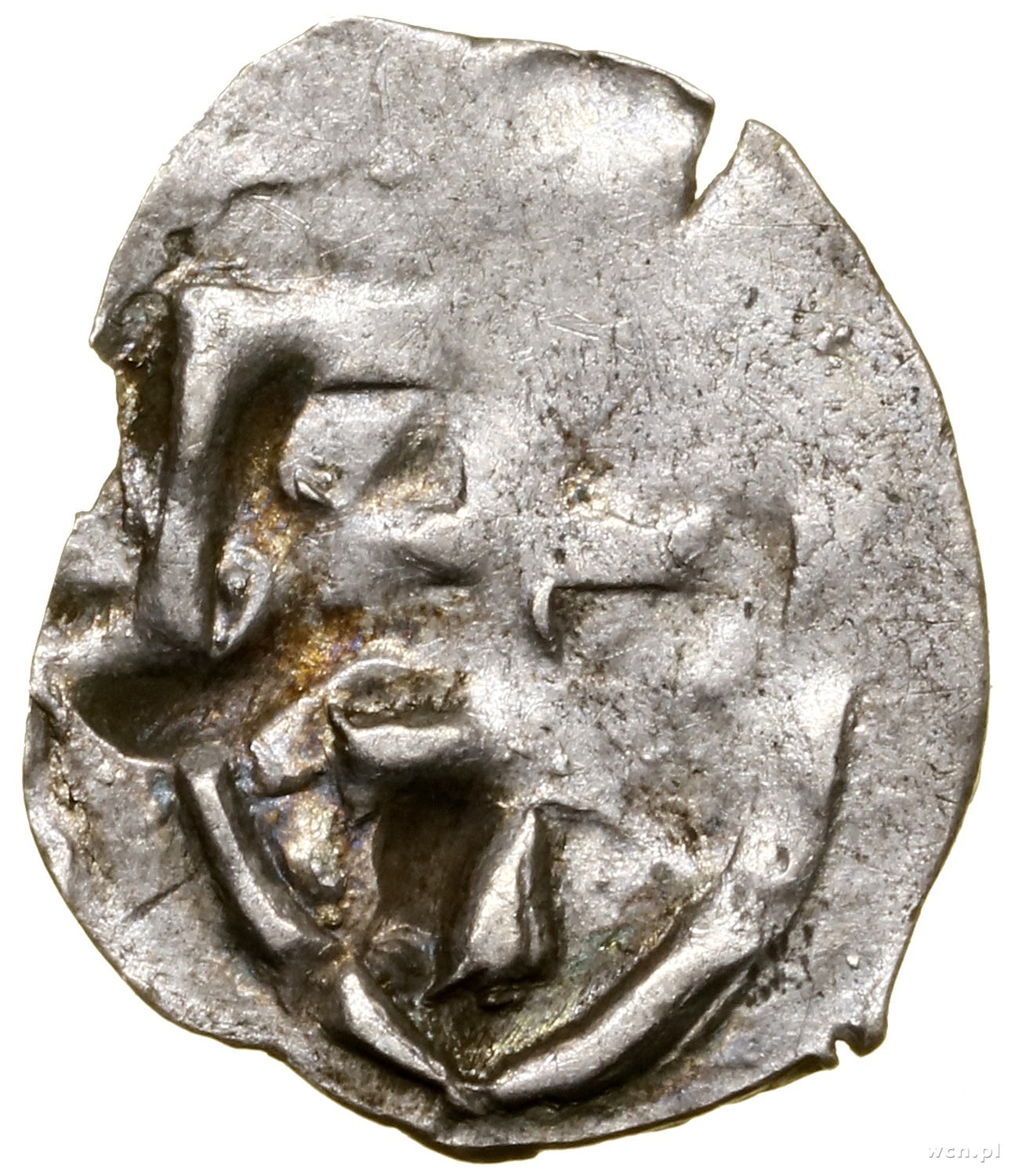 Władysław Jagiełło (1377–1434), Denar, bez daty (1387–1392), Wilno; Aw: Tarcza z krzyżem jagiellońskim; Rw: Jeździec z mieczem, w lewo; Ivanauskas 5J, Kop. 3115 (R6); srebro, 13.9 mm, 0.27 g.