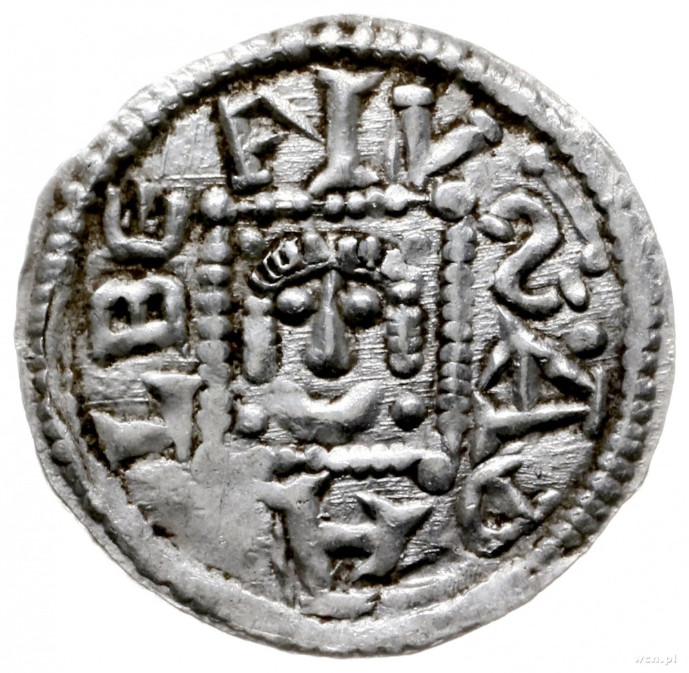 denar z lat 1146-1157; Aw: Książę z mieczem trzymanym p...