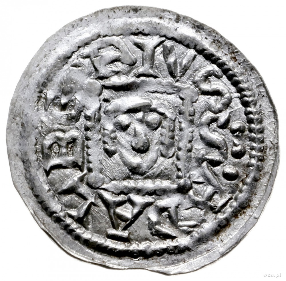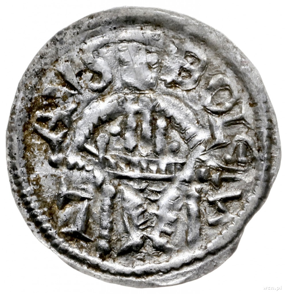 denar z lat 1146-1157; Aw: Książę z mieczem trzymanym p...