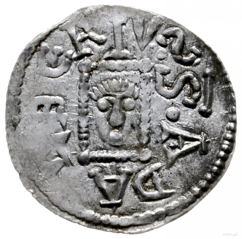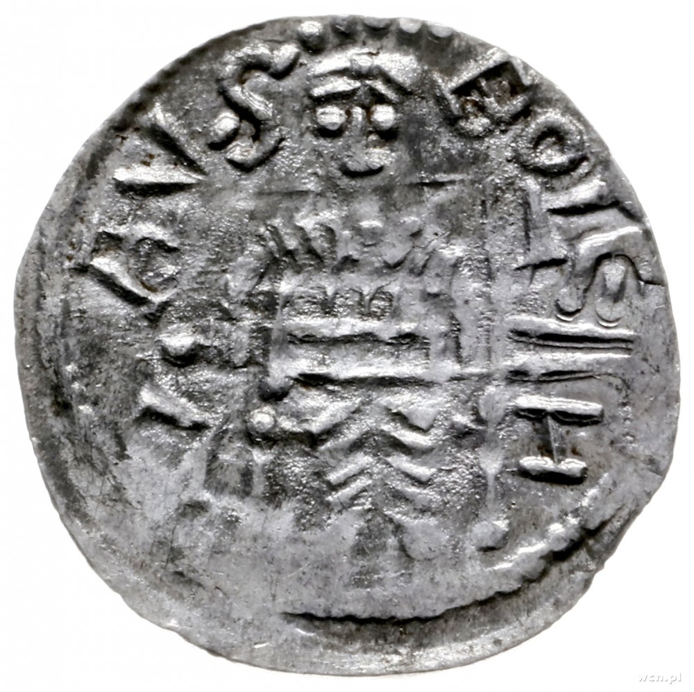 denar z lat 1146-1157; Aw: Książę z mieczem trzymanym p...