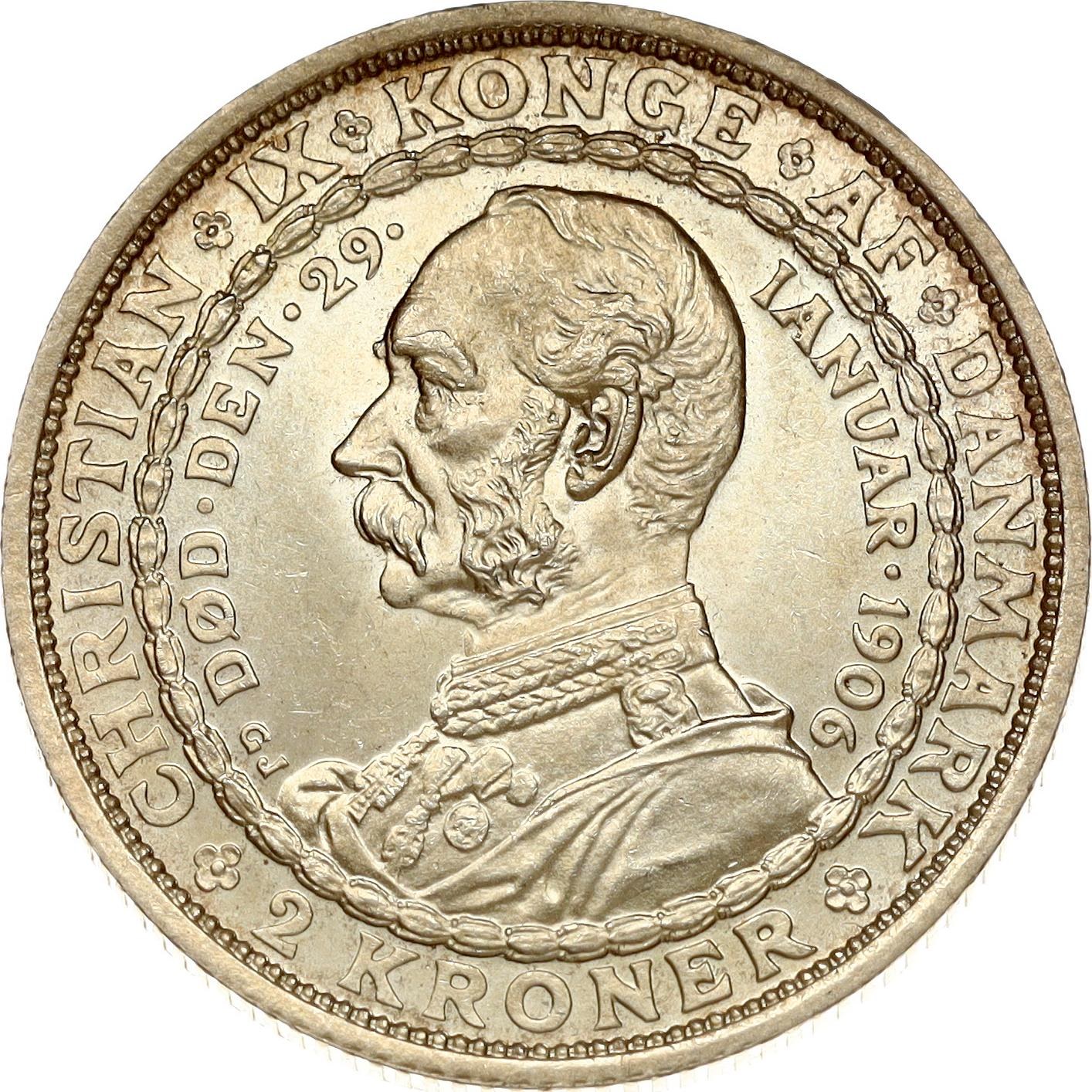 Denmark 2 Kroner 1906 VBP;GJ Death of Christian IX