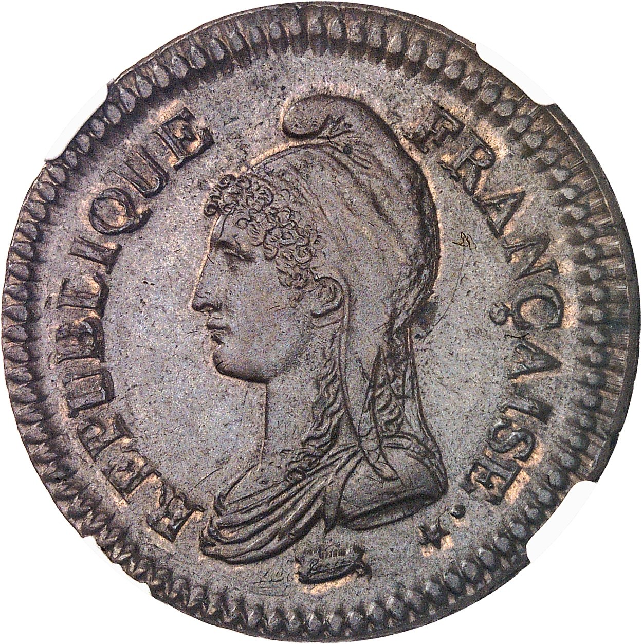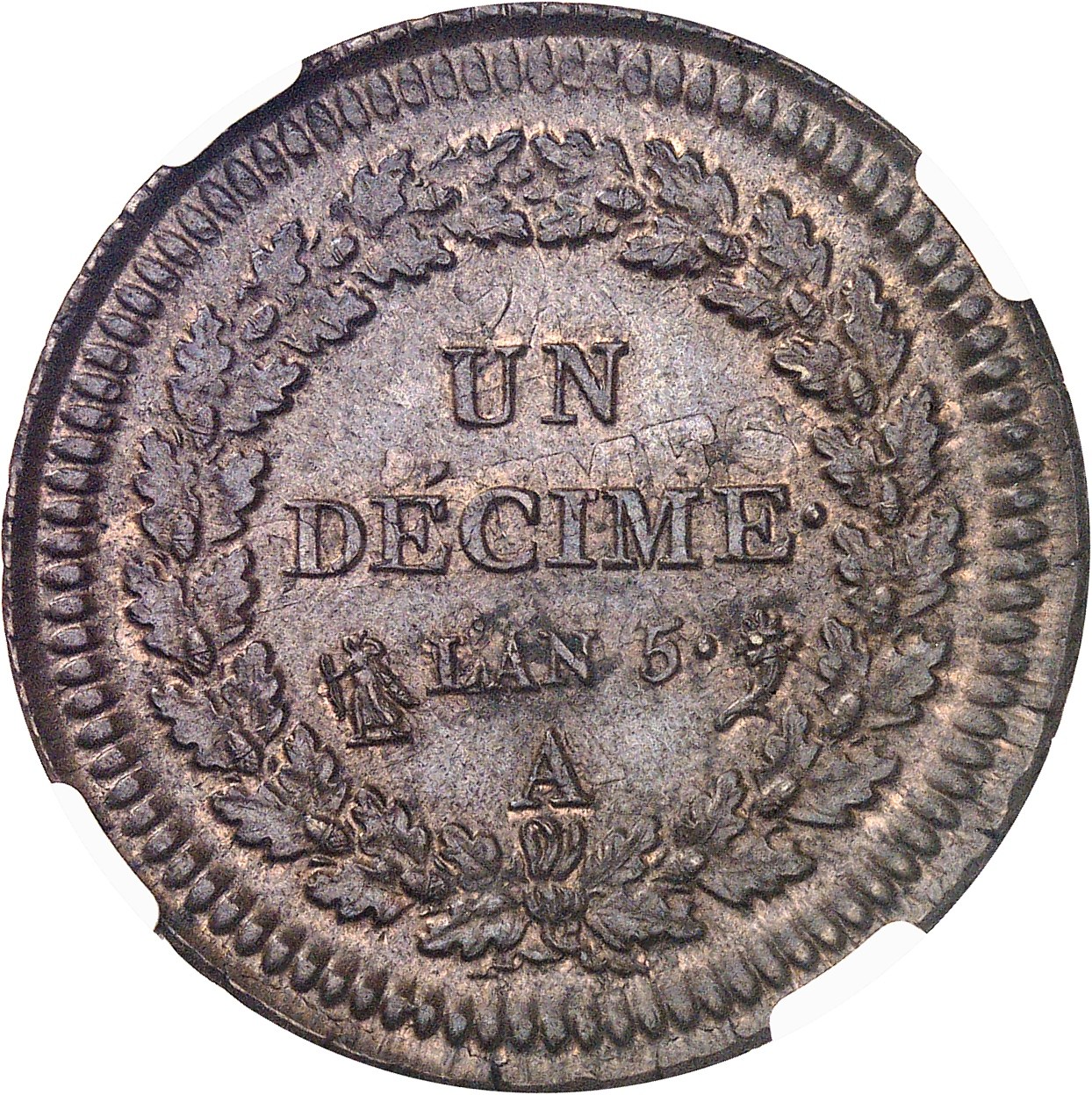 Directoire (1795-1799). Un décime Dupré, surfrappe de 2 décimes AN 5 (1796), A, Paris. NGC MS 64 BN (2148367-002).