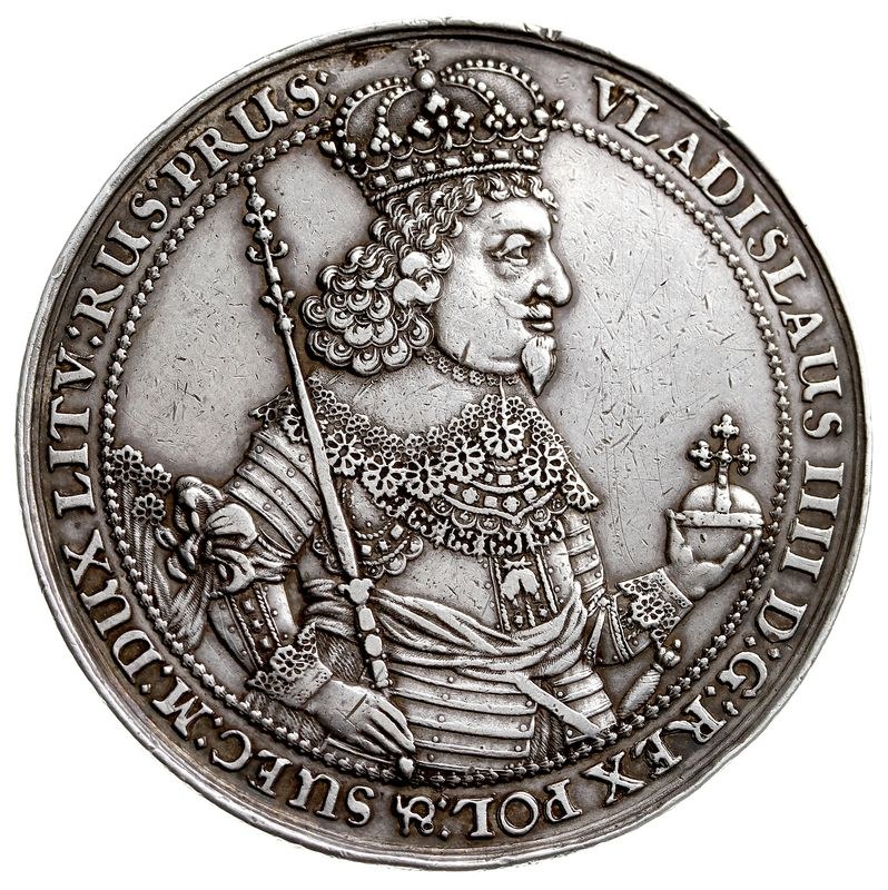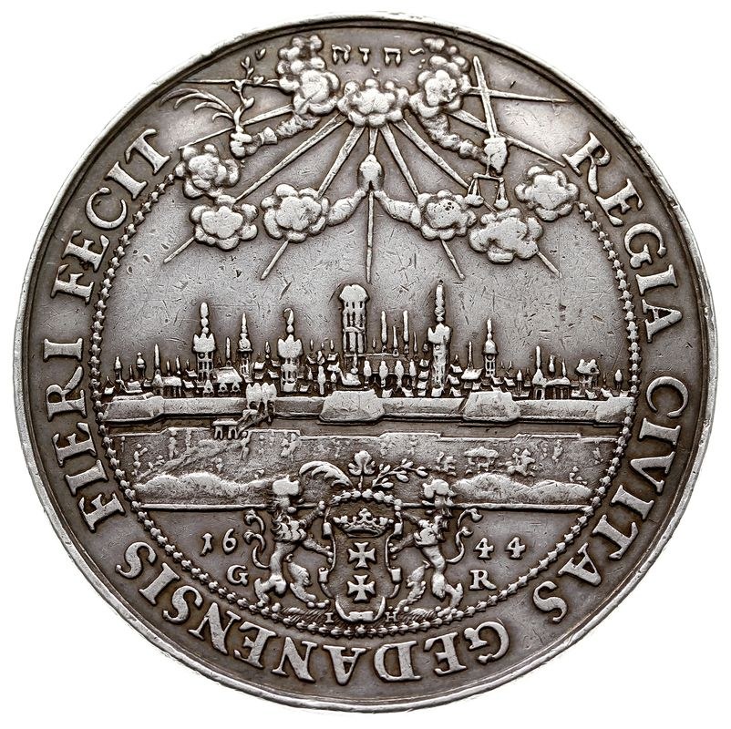 Władysław IV Waza 1632-1648, donatywa 1644, Gdańsk, Aw: Półpostać króla, napis w otoku VLADISLAUS IIII D G REX POL & SUEC M DUX LITV RUS PRUS, Rw: Widok Gdańska, poniżej herb miasta, data i inicjały G-R (Gerharda Rogge) oraz I-H (Jana Höhna sen.), napis w otoku REGIA CIVITAS GEDANENSIS FIERI FECIT, H-Cz. 9727 (R3), Racz. 118, jedna z najpiękniejszych donatyw ze wspaniałym i efektownym popiersiem króla, odbitka w srebrze o wadze 28.99 g, na awersie drobna wada tła, patyna