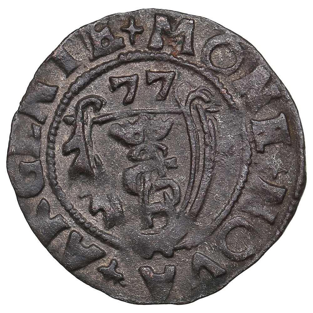 Obv.: Coat of arms, date (15)77 above the shield; “+MONE+NOVA+ARGENTE”.
