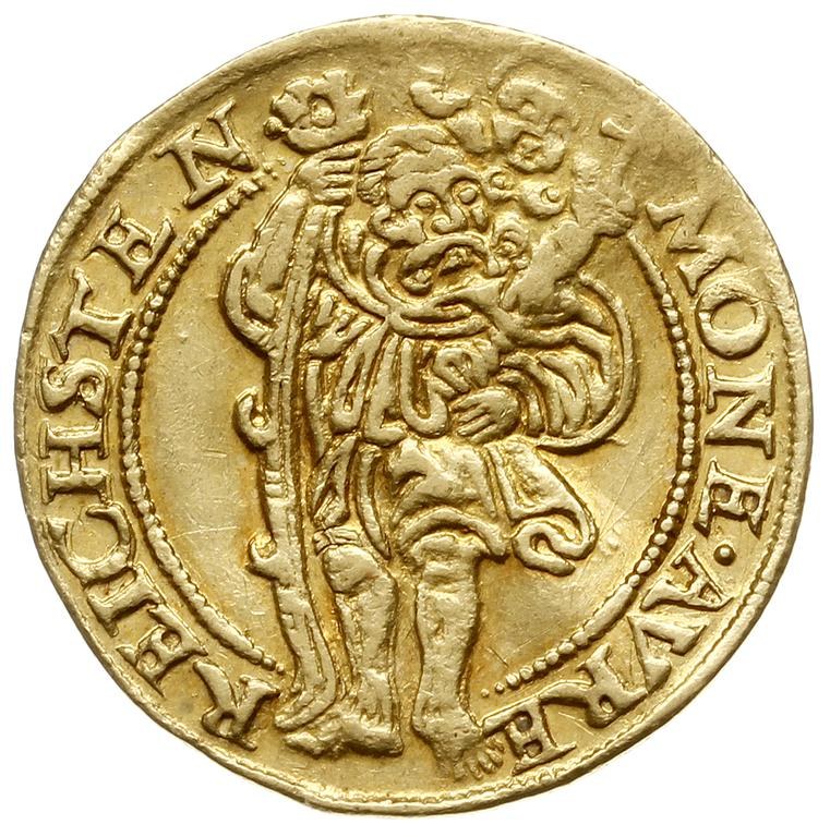 Joachim Ząbkowicki, Henryk II Bierutowski, Jan Oleśnicki, Jerzy III Ziębicki 1536- 1548, dukat 1550, Złoty Stok, Aw: Tarcza herbowa i napis wokoło, Rw: Św. Krzysztof i napis wokoło, złoto 3.52 g, F.u.S. 2100, Fr. 3230, minimalnie gięty