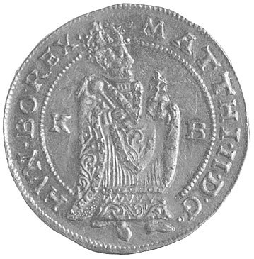 Matthias II 1608- 1619, dukat 1612, Krzemnica, Aw: Cesarz stojący w prawo i napis w otoku, w polu K-B, Rw: Madonna z Dzieciątkiem, napis w otoku, data 1612, Fr.37, Huszar 1082, złoto, 3.46 g