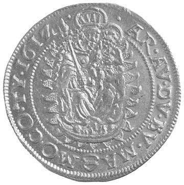 dukat 1612, Krzemnica, Aw: Cesarz stojący w prawo i nap...