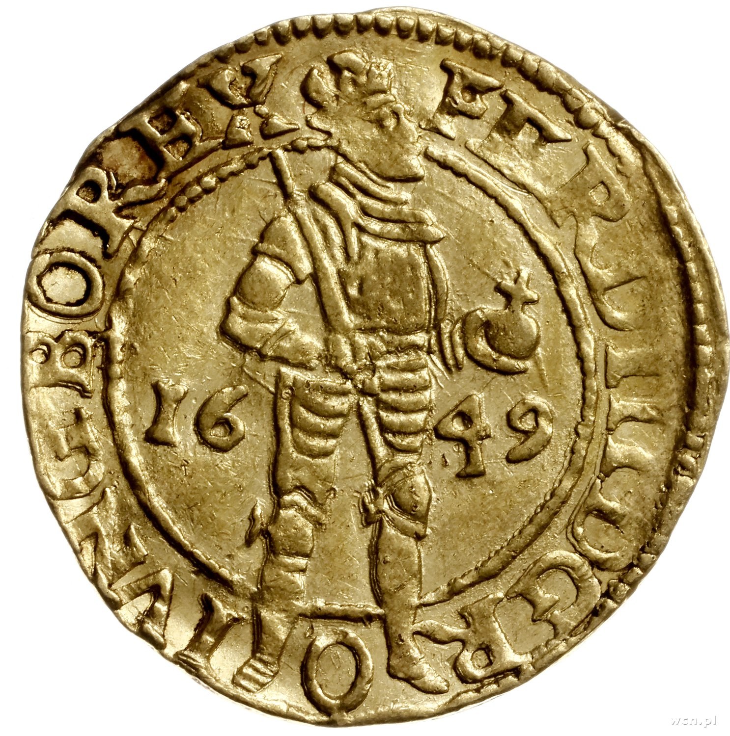 Kampen, dukat 1649; Delmonte 1117 (R1), Fr. 161, Verk 159.1, Purmer Ka16; złoto 3.46 g, rzadki