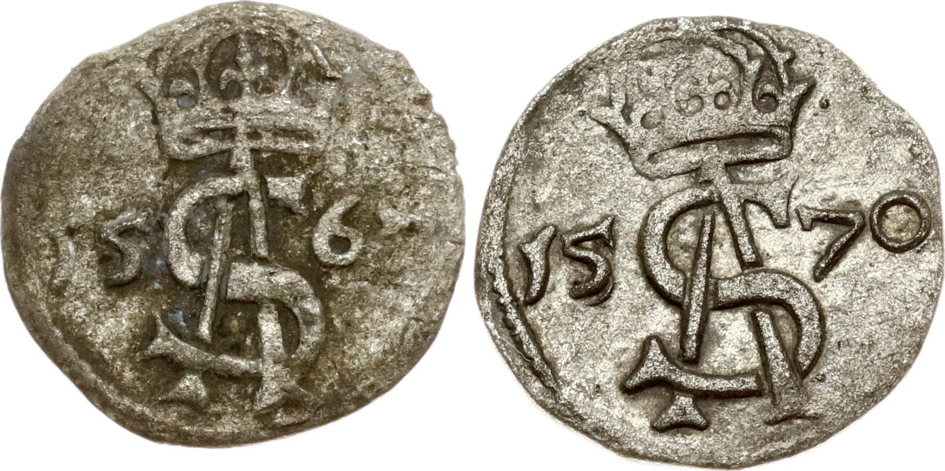 Lithuania. Zygmunt II August (1545–1572). Dwudenar 1567 & 1570 Vilnius. Silver total weight 0.99 g. Lot of 2 coins.