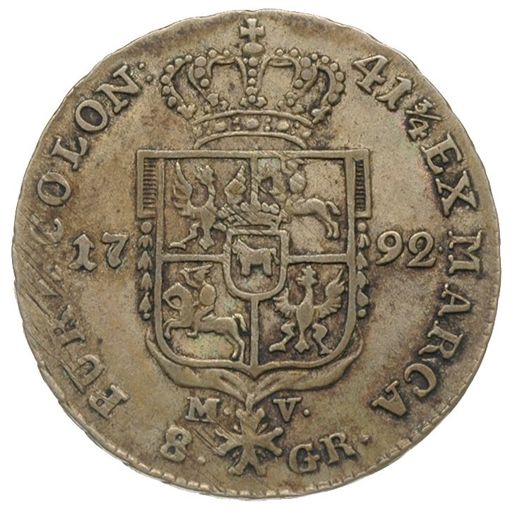 dwuzłotówka 1792, Warszawa, Plage 344, justowana, patyn...