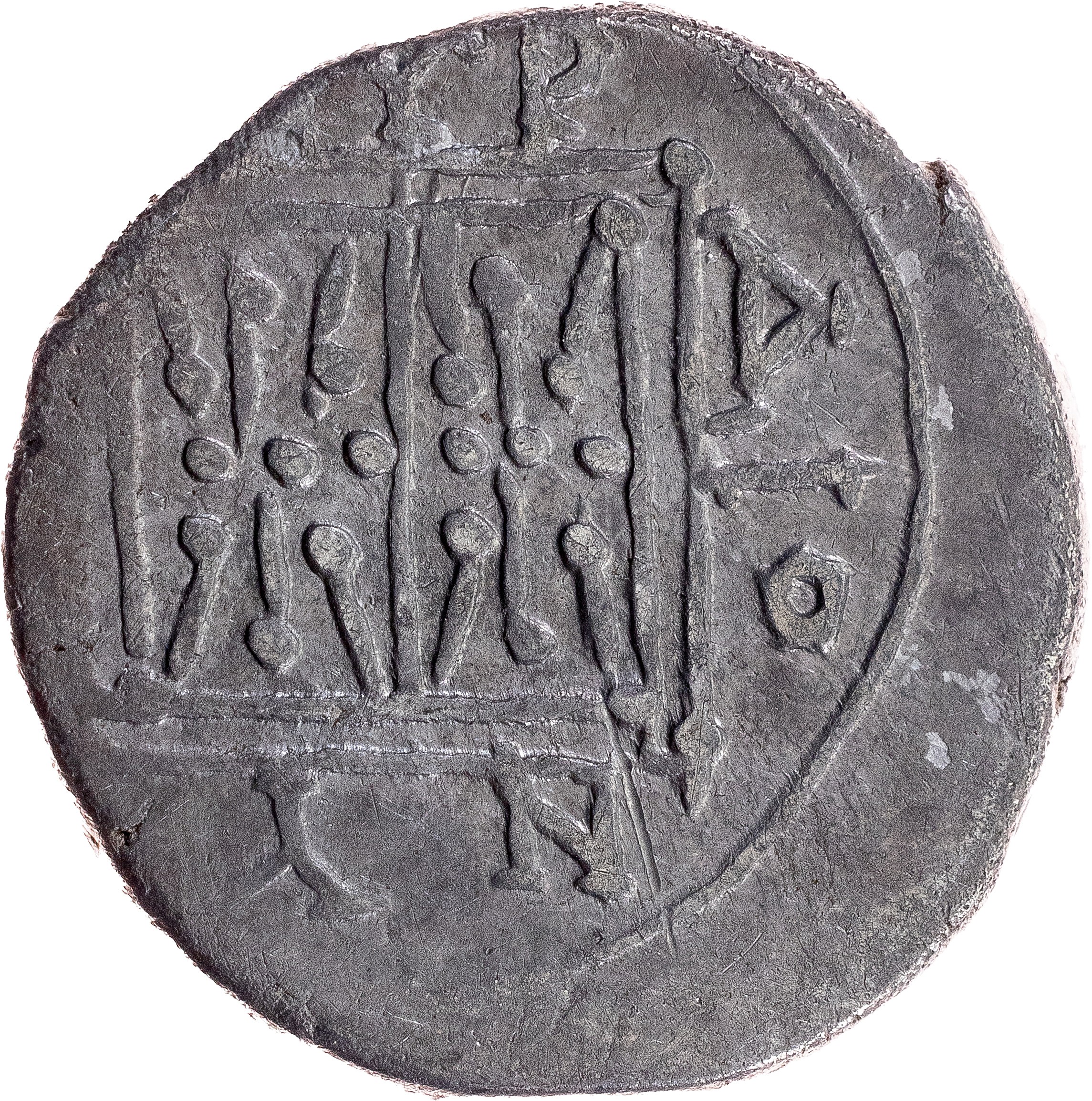 Description: Meniskos and Dionysios Magistrates; Obv: Cow standing right, looking back at suckling calf standing left below, ΜΕΝΙΣΚΟΣ above; dog running right in exergue / Rev: Double stellate pattern in double linear square; ΔYP ΔΙΟ-ΝΥ-ΣIOY around