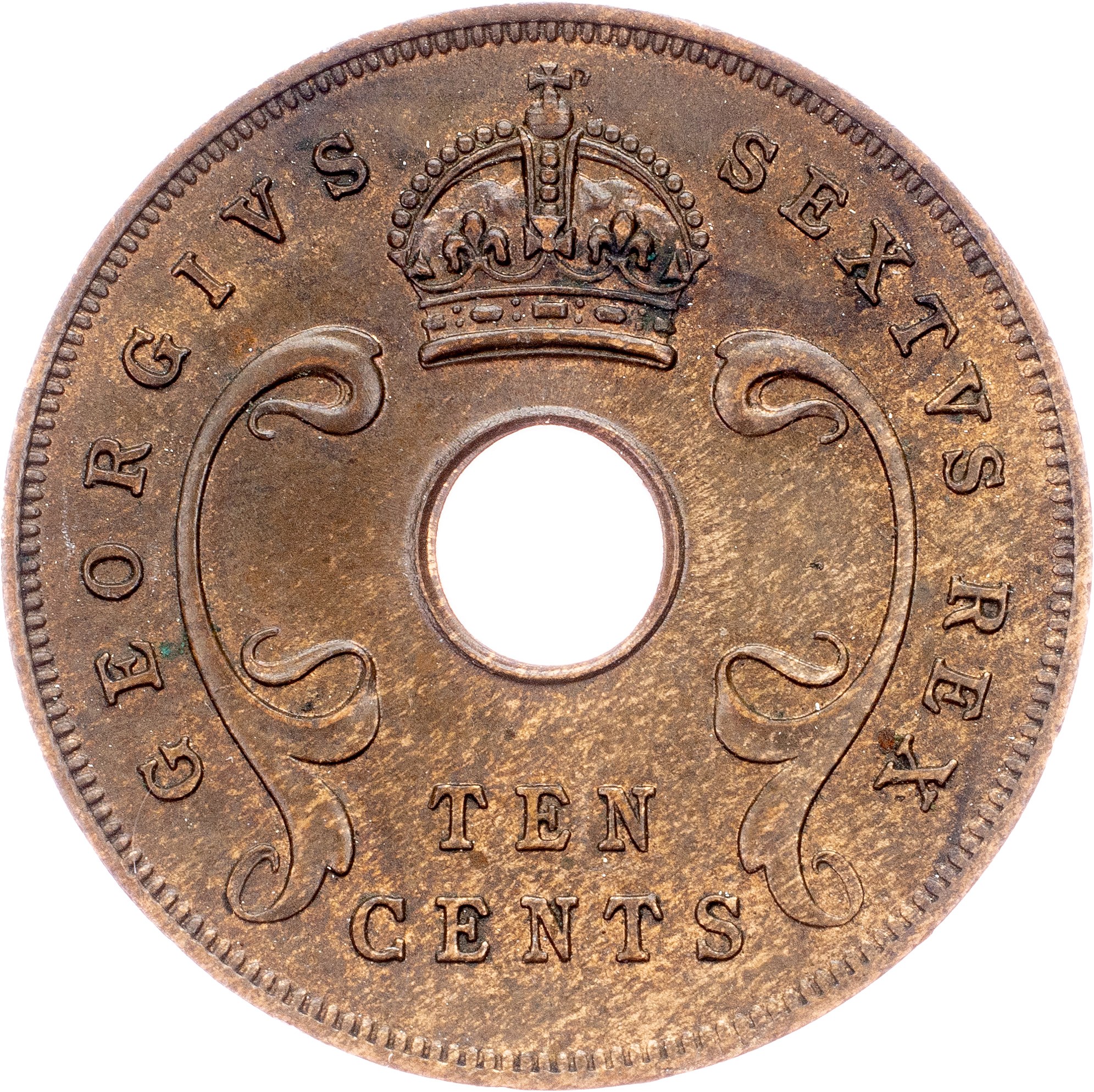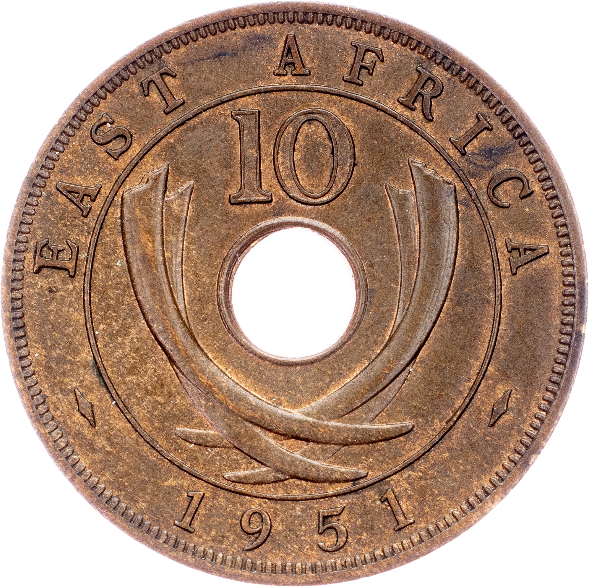 East Africa, George VI., 10 Cents 1951, London, 9,385 g, Bronze, KM# 34, remains of mint luster, toned; aUNC