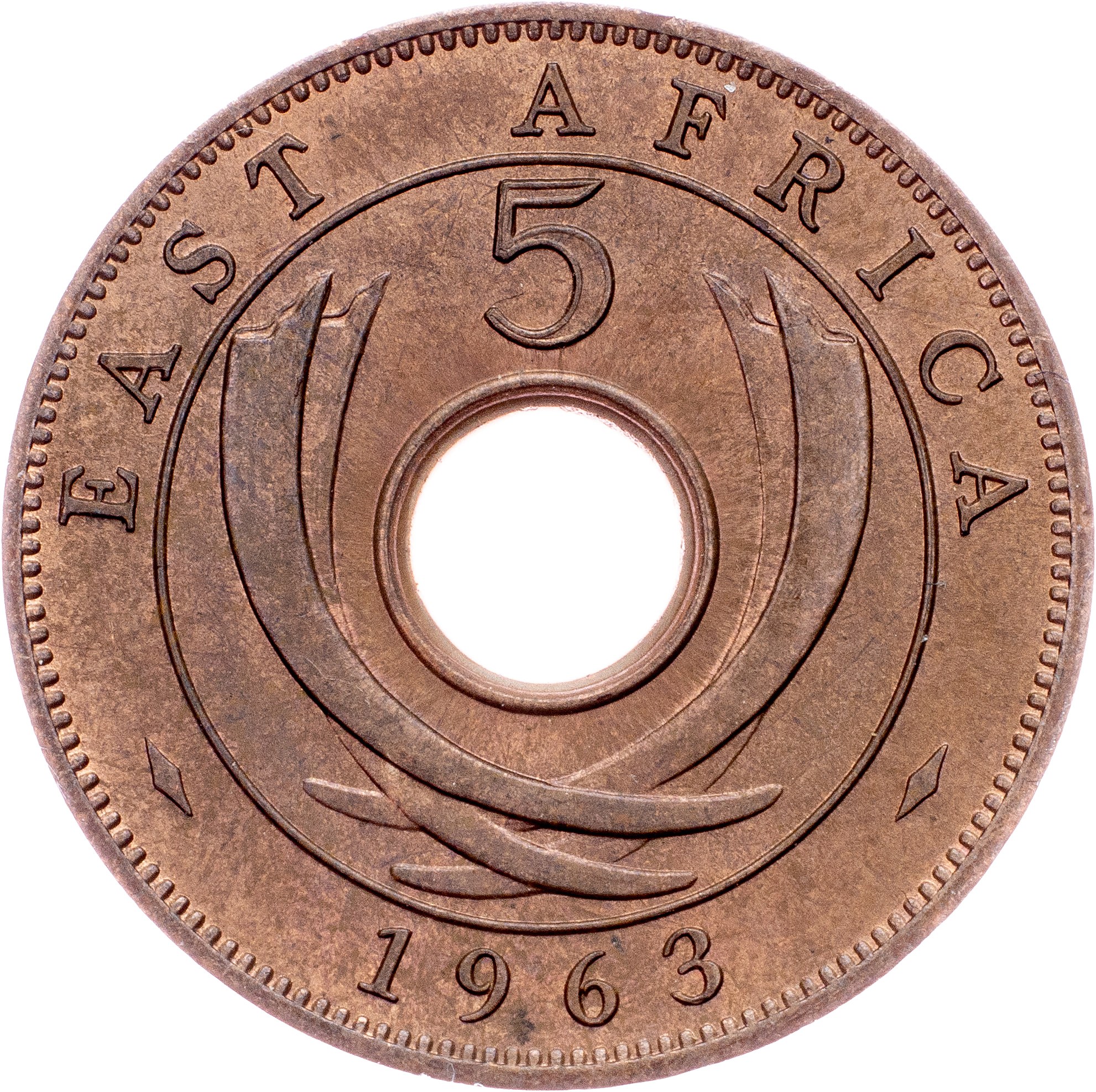 East Africa, Elizabeth II., 5 Cents 1963, London, 5,646 g, Bronze, KM# 37, mint luster, toned; UNC