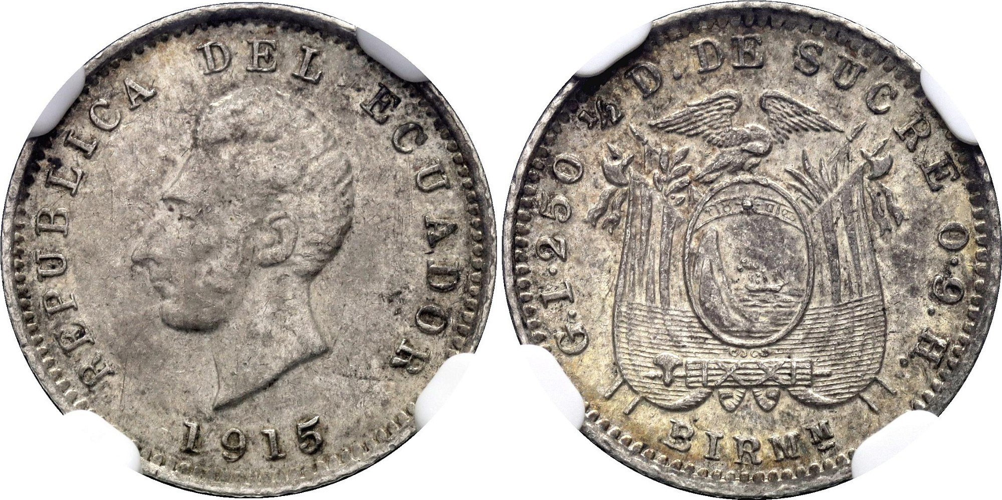 Ecuador 1/2 Decimo 1915 BIRMM NGC AU55