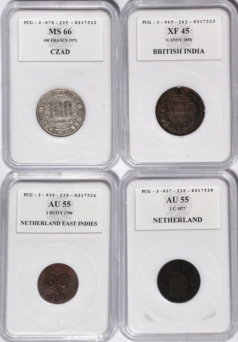 Egzotyka, zestaw 4 szt. monet: Indie, Czad, Niderlandy