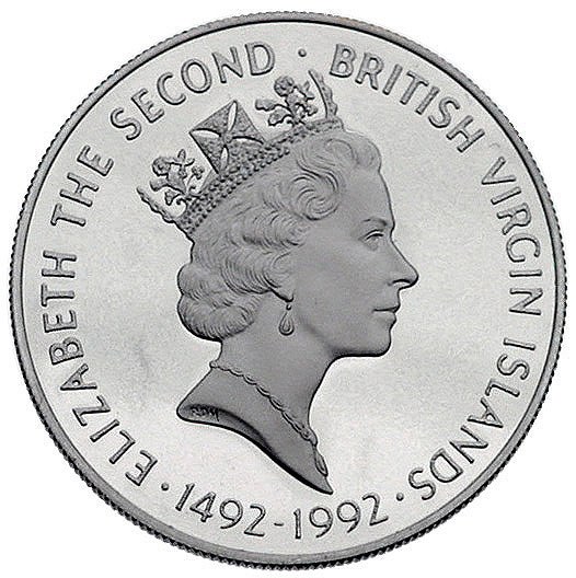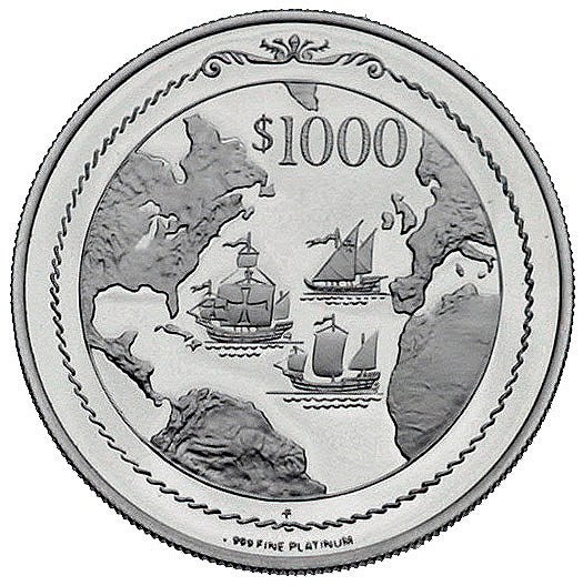 WYSPY DZIEWICZE, Elżbieta II 1952-,1000 dolarów bez daty, Trzy płynące statki, Fr, 37, platyna 14.65 g, moneta wybita w 1992 roku dla uczczenia wyprawy Krzysztofa Kolumba