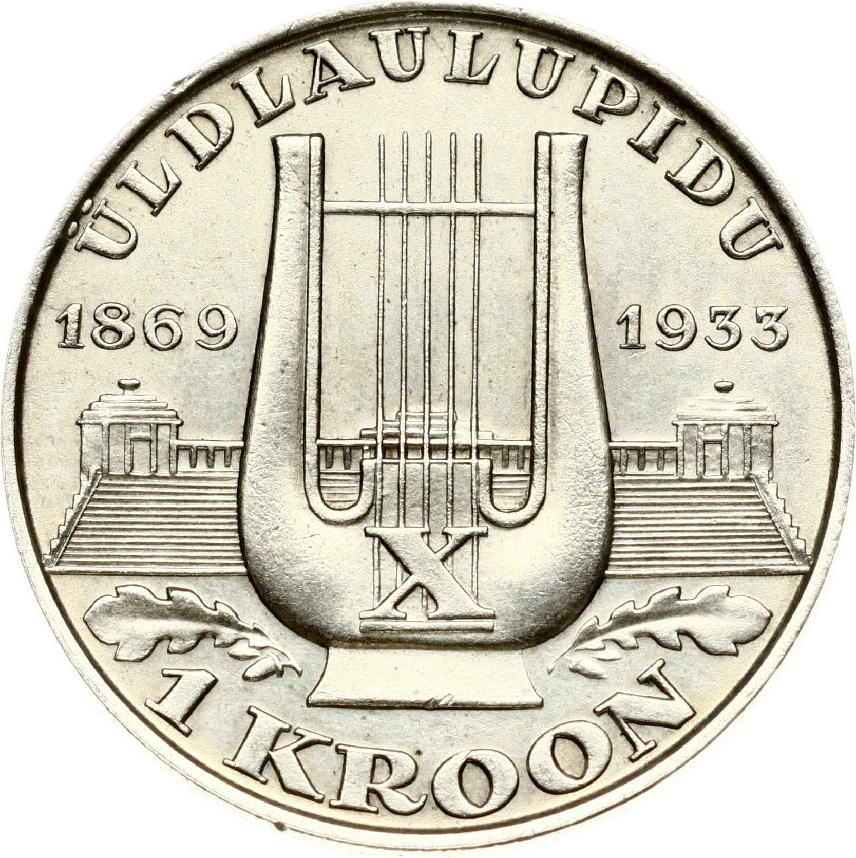 Estonia 1 Kroon 1933 10th National Song Festival. Silver. KM-14. Kaupo Lann-22