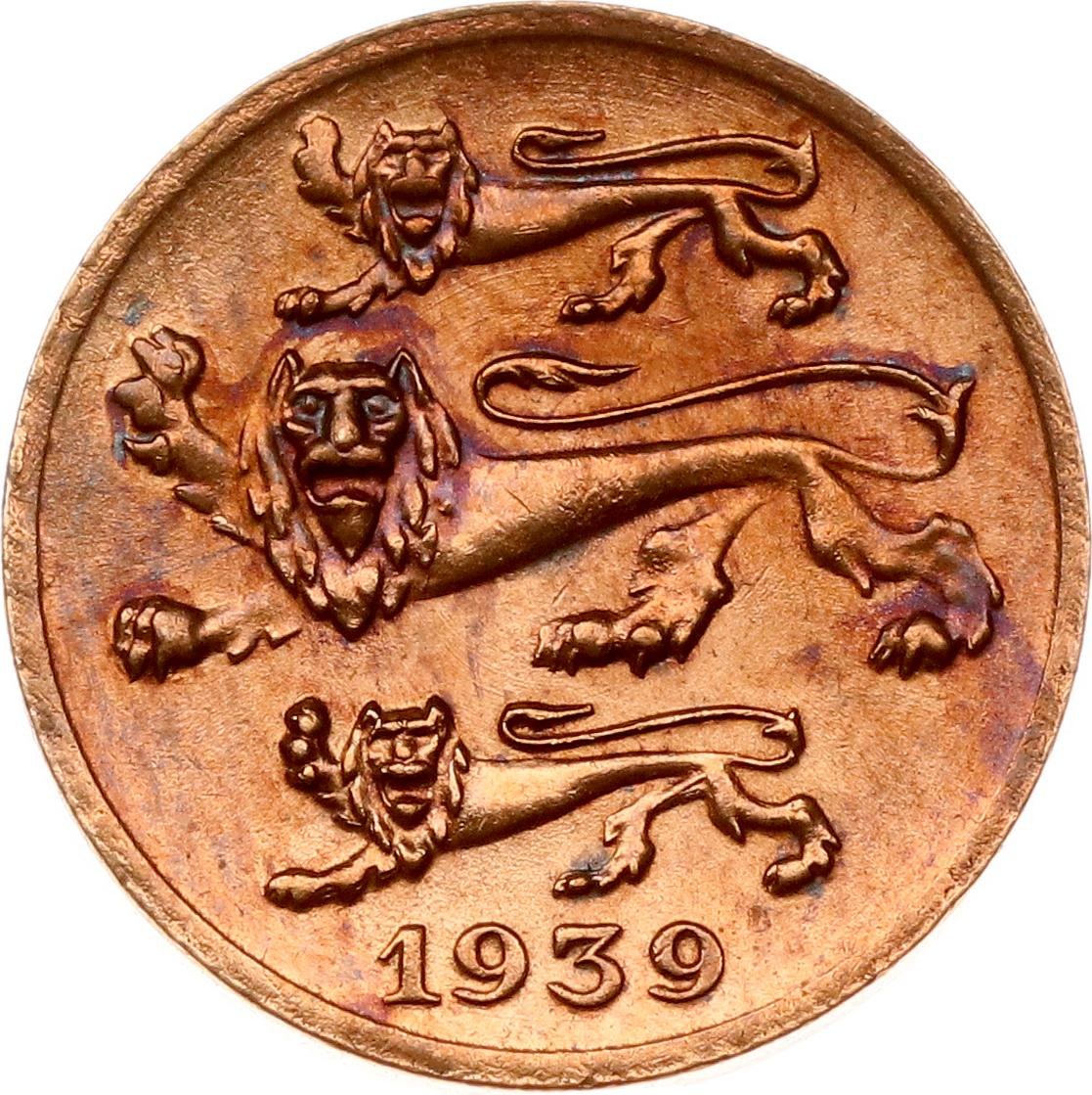 Estonia. 1 Sent 1939. Bronze 1.86 g. KM 19.