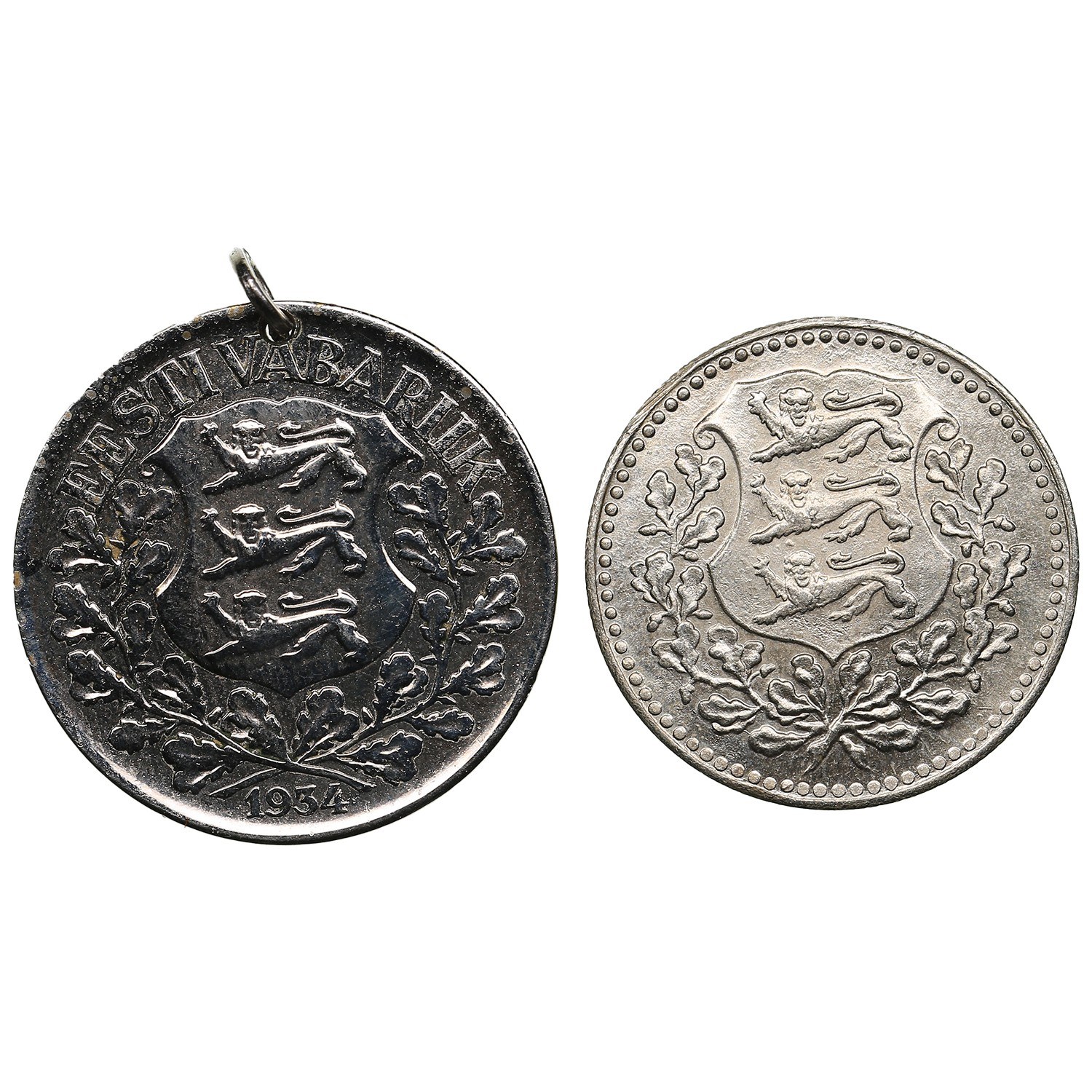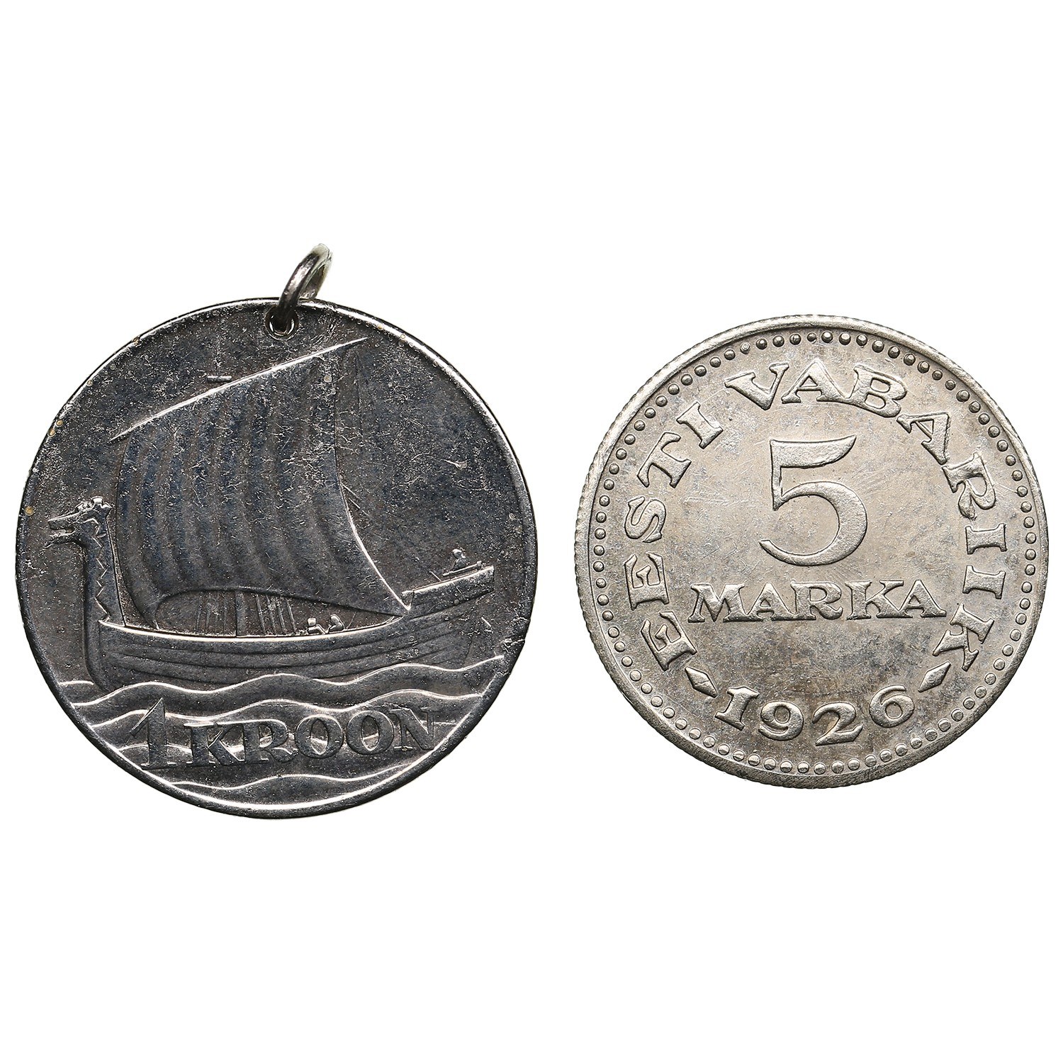 Estonia 5 Marka 1926 Counterfeit & Silvered 1 Krooni 1934 (2)