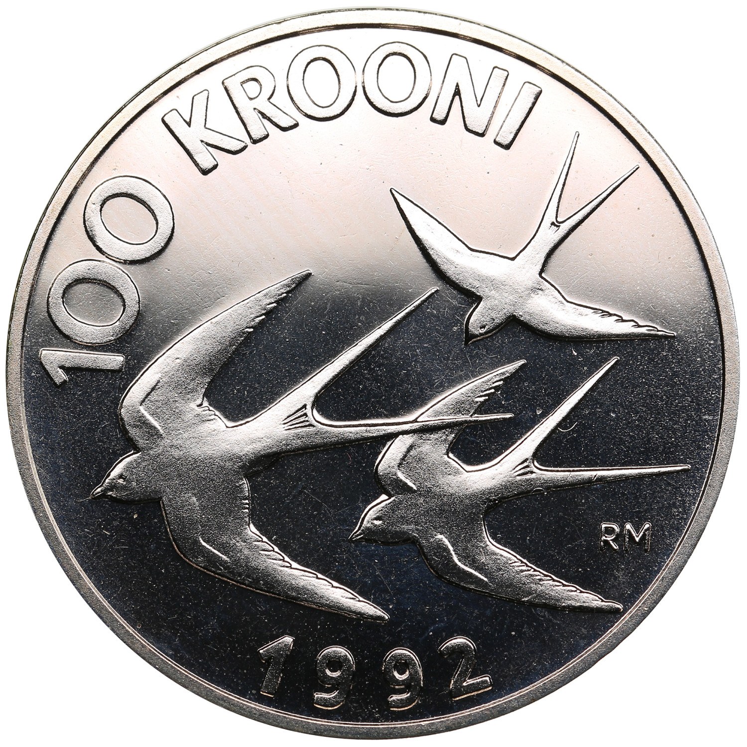 23.93g. PROOFLIKE. Commemorative coin: Kroon reintroduced as Estonia's currency on 20 June 1992. Mintmark RM. KM 27.
