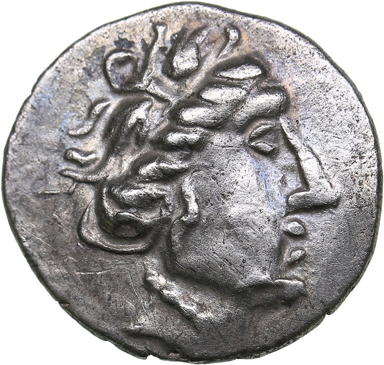 1.65 g. 15mm. XF/XF Wreathed head of nymph Histiaia right. / Nymph seated right on stern of galley. HGC 4, 1525.