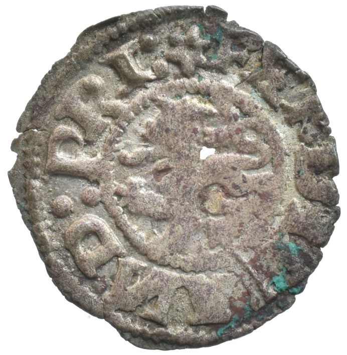 bílý peníz b.l. Kutná Hora, FERDINAND:PRI (zrcadl. N), dr.dírka