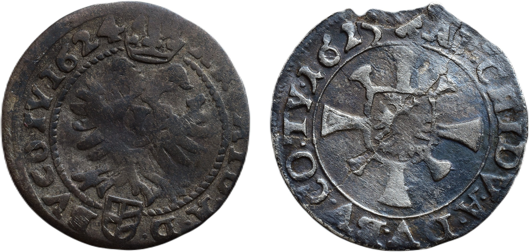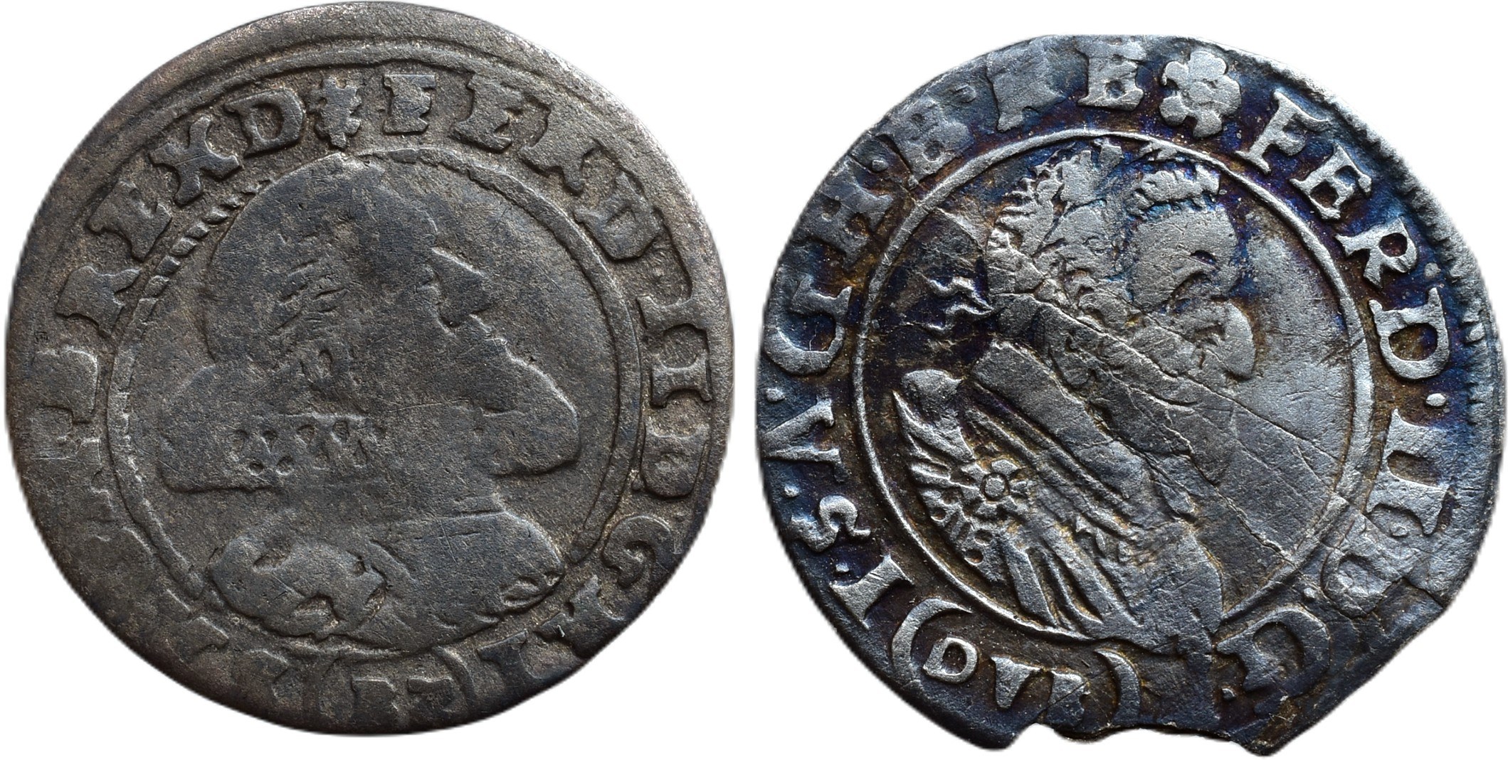 Ferdinand II. 1619-1637, 1 krejcar 1624 BZ Olomouc+1 krejcar 1625 DvB Nisa