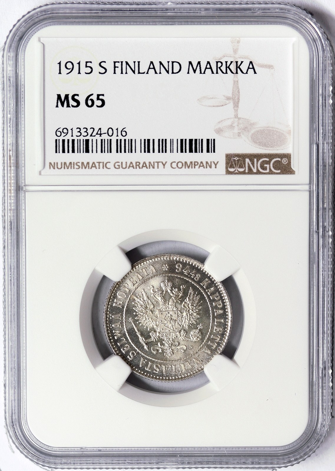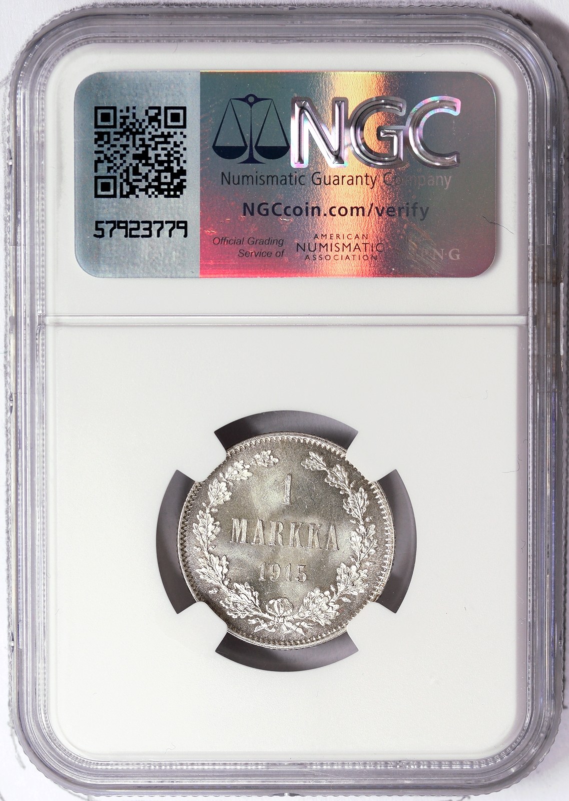 Finland, Russian Occupation, Nicholas II, 1 Markka 1915, S