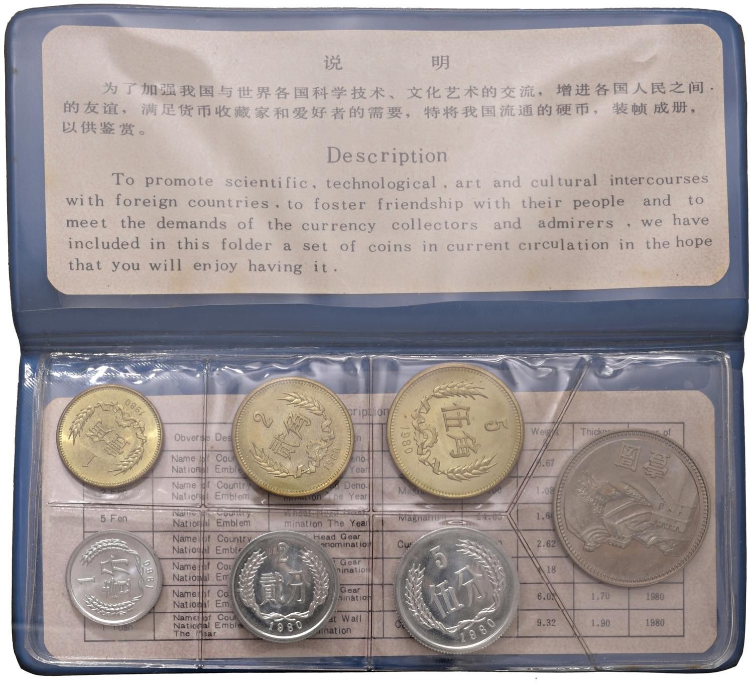 CINA Divisionale 1980 - Lotto di sette monete in astuccio in plastica nera originale