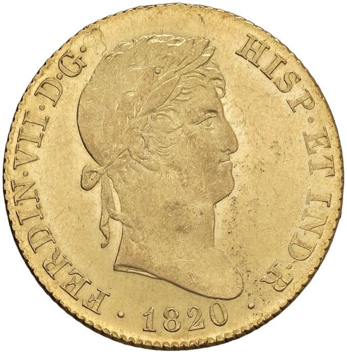 Ferdinando VII (1808-1833) Madrid - 4 Escudos 1820 GJ - KM 484; Cal. 1716 AU (g 13,58) Metallo fresco e ancora lucente. Esemplare di elevatissima conservazione