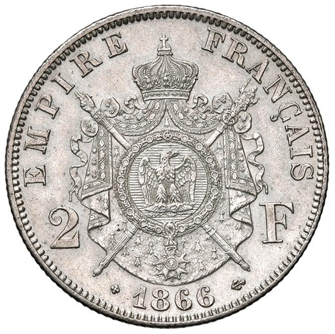 Foreign coins - FRANCIA Napoleone III (1852-1870) 2 Franchi 1866 BB - KM 807 AG (g 9,87)