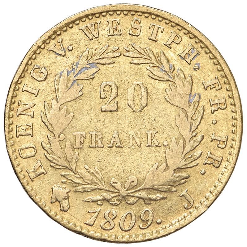 GERMANIA Westphalia - Hieronymus Napoleon (1807-1813) 20 Franchi 1809 J - KM 102 AU (g 6,34)