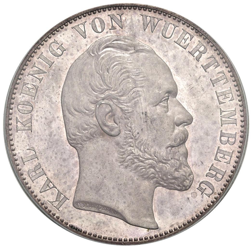 GERMANIA Württemberg - Carlo I (1864-1891) 2 Talleri 1871 - KM 618; Dav. 961 AG In slab PCGS MS 63 PL cod. 659952.63/53914539