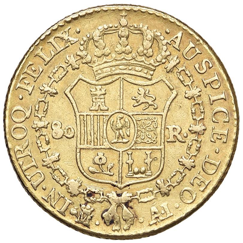 Giuseppe Napoleone (1808-1813) 80 Reales 1809 - KM 542; Cal. 47 AU (6,00) Tosato e bordo ripreso