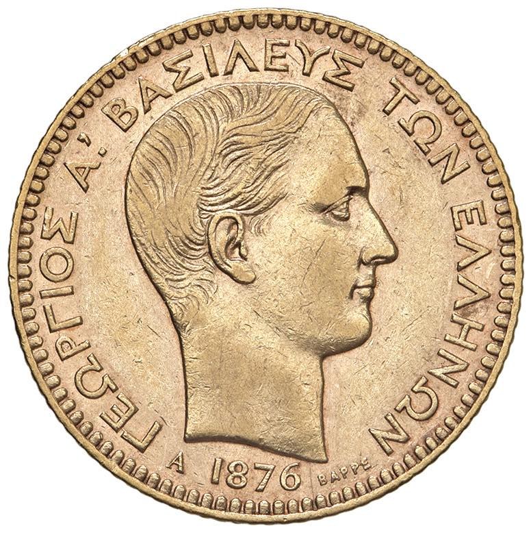 GRECIA Giorgio I (1863-1913) 20 Dracme 1876 - Fr. 15 AU (g 6,44) Minimo graffietto sulla guancia al D/