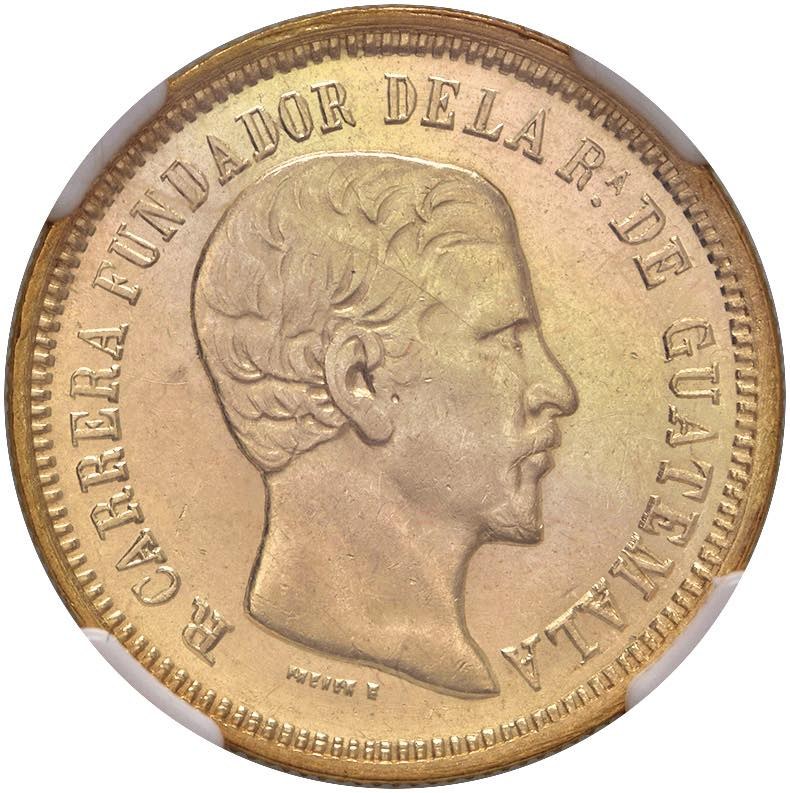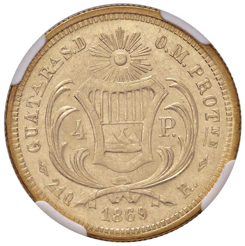 GUATEMALA 4 Pesos 1869 - Fr. 43 AU In slab NGC AU 58 3157865-002