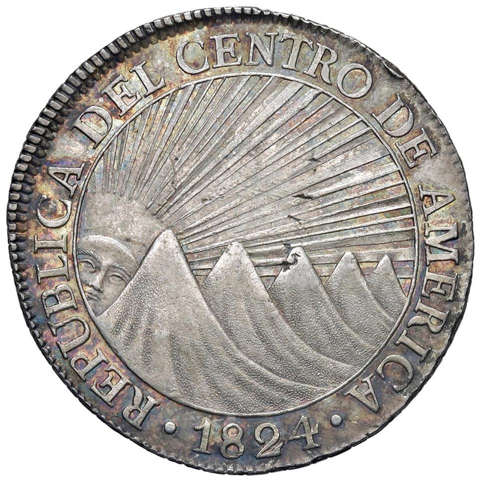 GUATEMALA 8 Reales 1824 NG-M - KM 4 AG (g 27,00) Graffietti. Bellissima patina