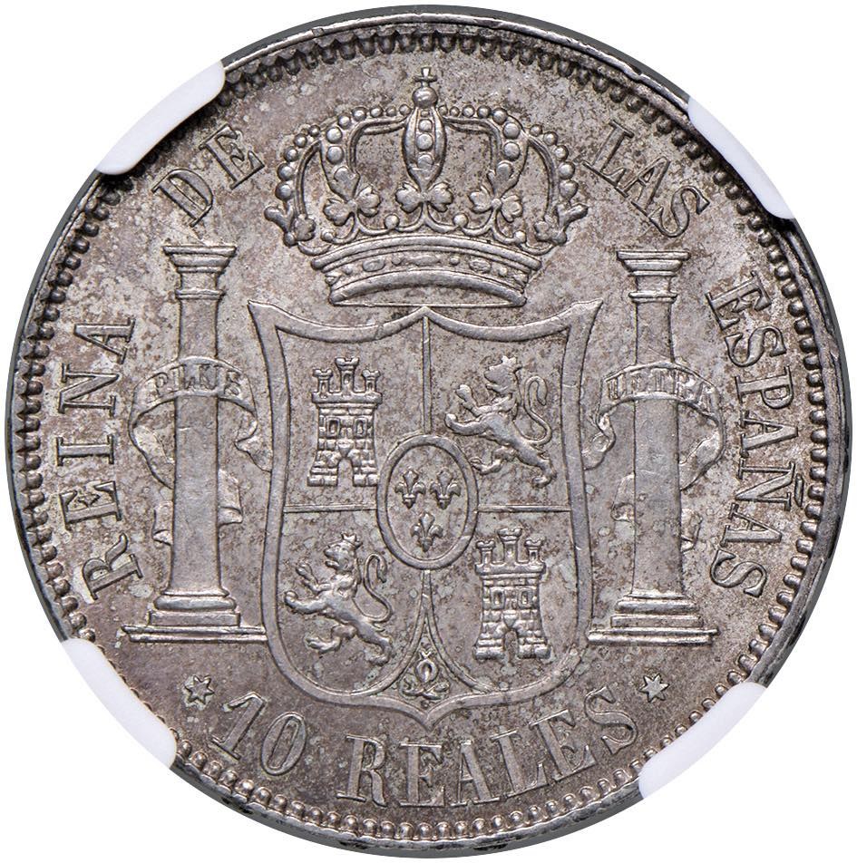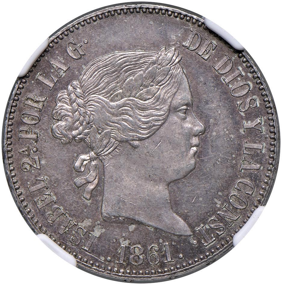 Isabella II (1833-1868) Madrid - 10 Reales 1861 - KM 611; Cal. 538 AG In slab NGC MS 62 cod. 8538647-001. Top pop, miglior esemplare certificato NGC